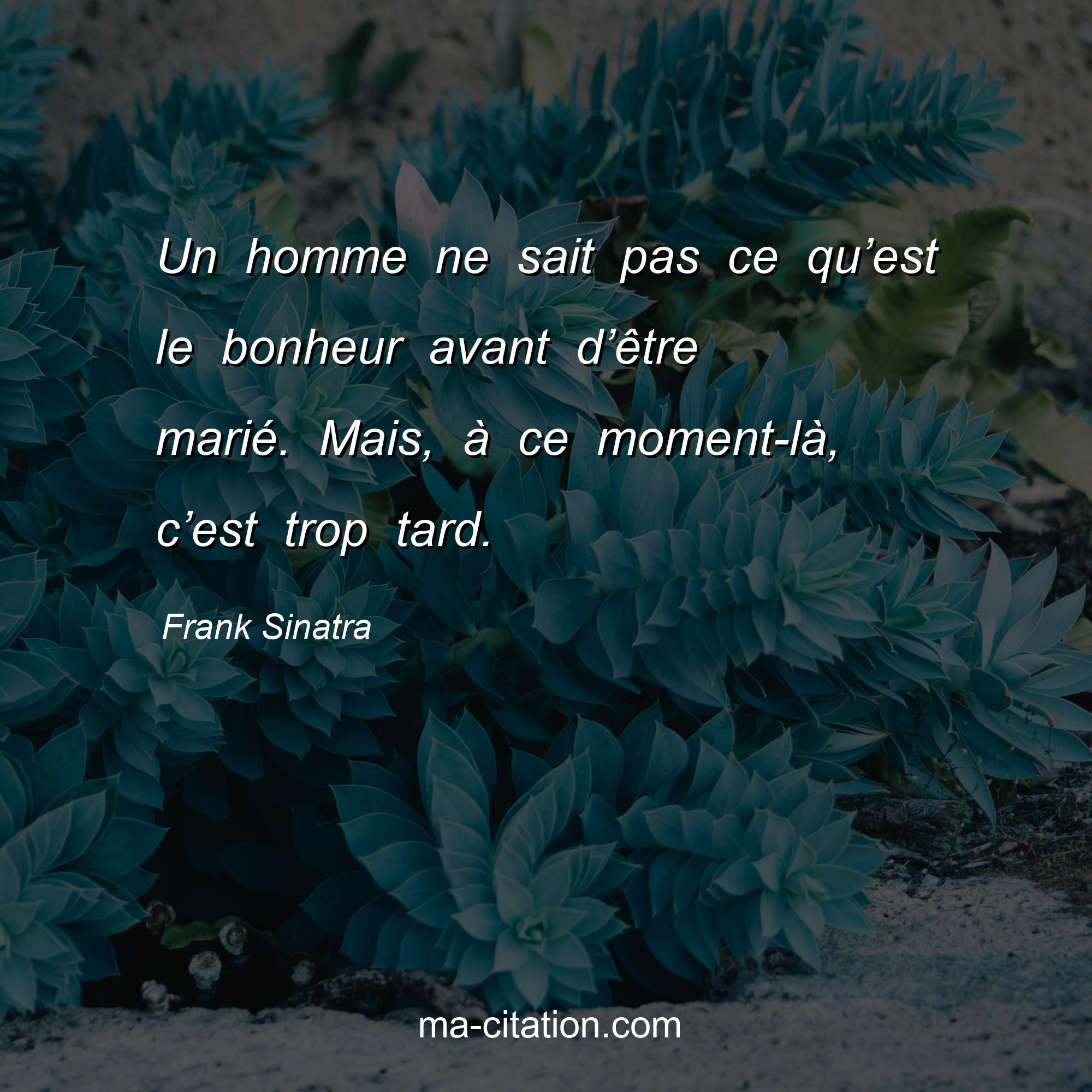 Citation sur la vie de Frank Sinatra :Un homme ne sait pas ce qu’est le bonheur avant d’être marié. Mais, à ce moment-là , c’est trop tard.