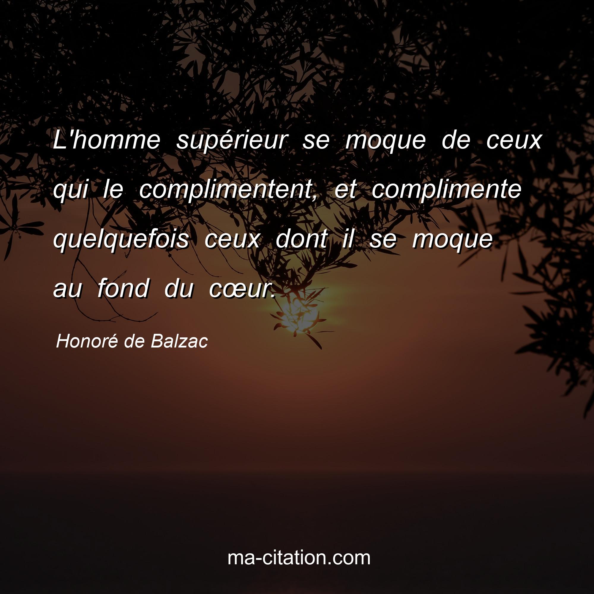 Citation sur la vie de Honoré de Balzac :L'homme supérieur se moque de ceux qui le complimentent, et complimente quelquefois ceux dont il se moque au fond du cœur.