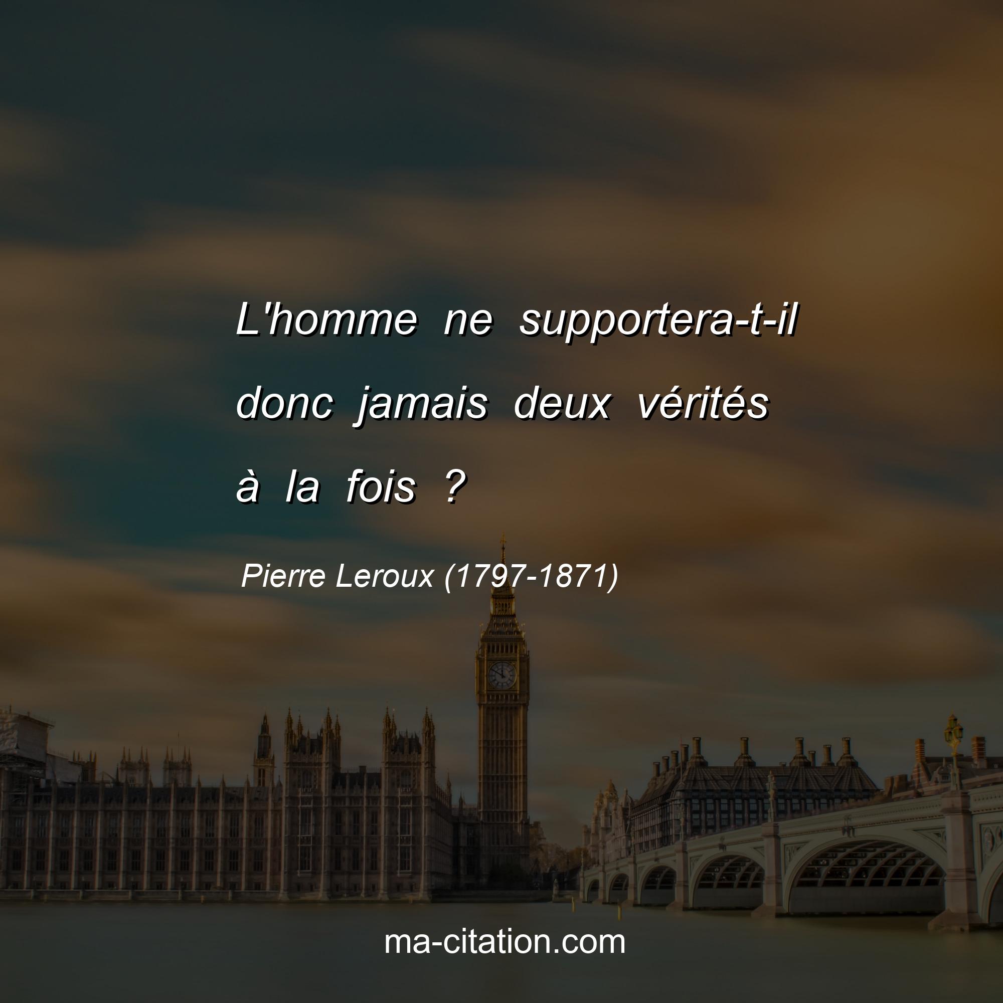 Citation sur la vie de Pierre Leroux (1797-1871) :L'homme ne supportera-t-il donc jamais deux vérités à la fois ?