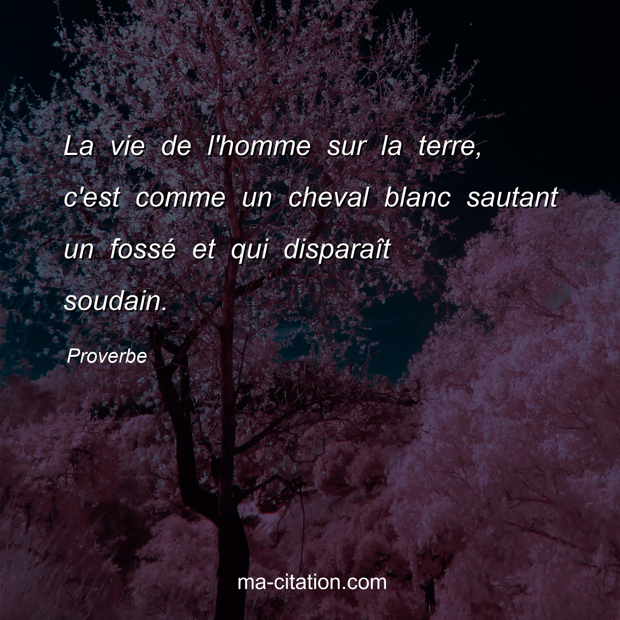 Proverbe sur la vie :La vie de l'homme sur la terre, c'est comme un cheval blanc sautant un fossé et qui disparaît soudain.