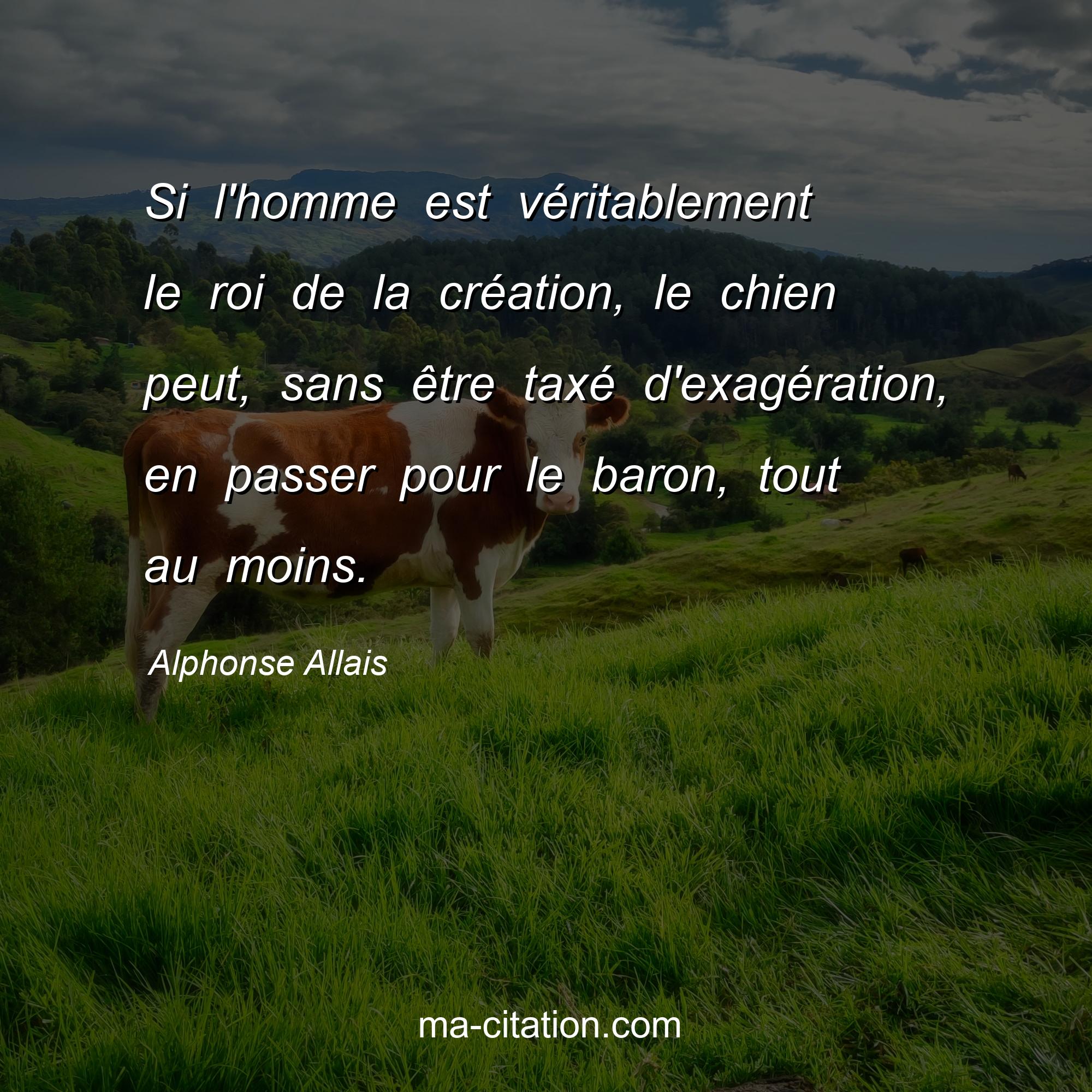 Citation sur la vie d'Alphonse Allais :Si l'homme est véritablement le roi de la création, le chien peut, sans être taxé d'exagération, en passer pour le baron, tout au moins.