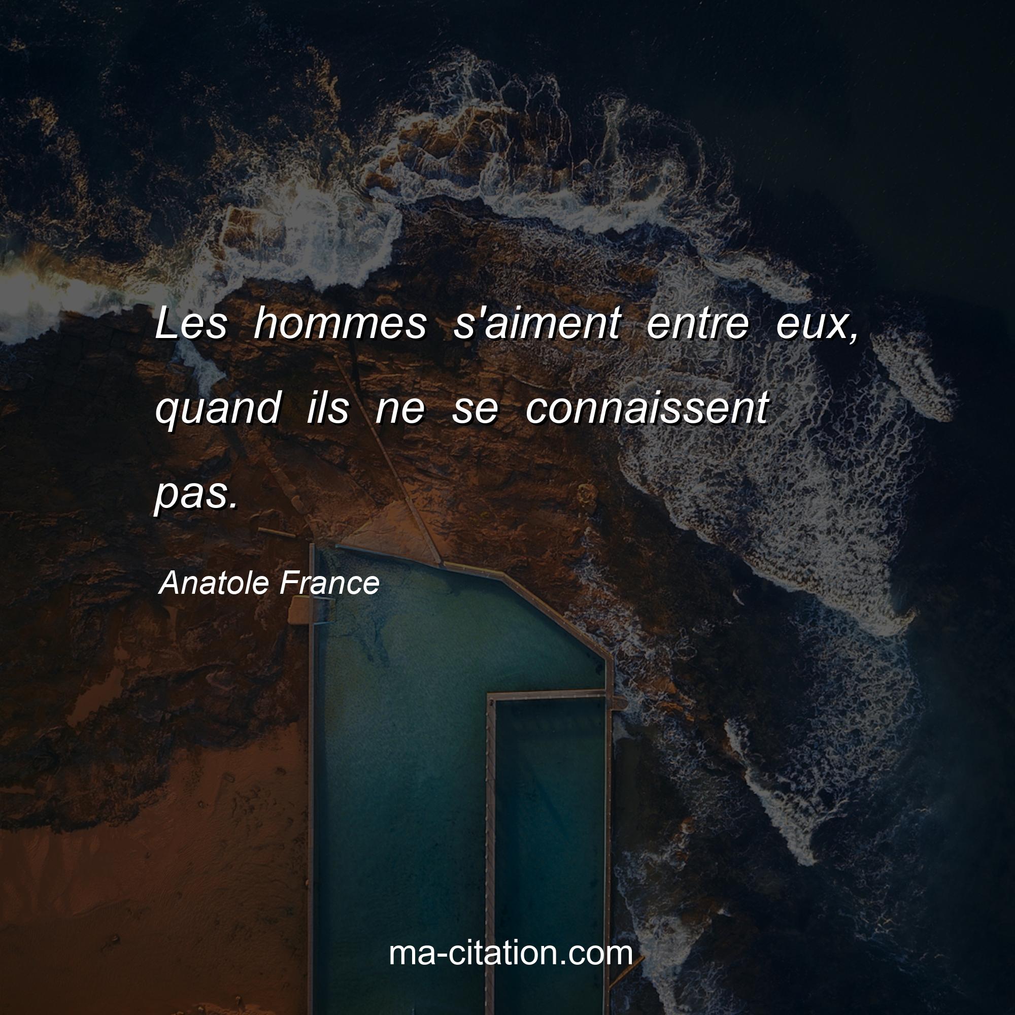 Citation sur la vie d'Anatole France :Les hommes s'aiment entre eux, quand ils ne se connaissent pas.