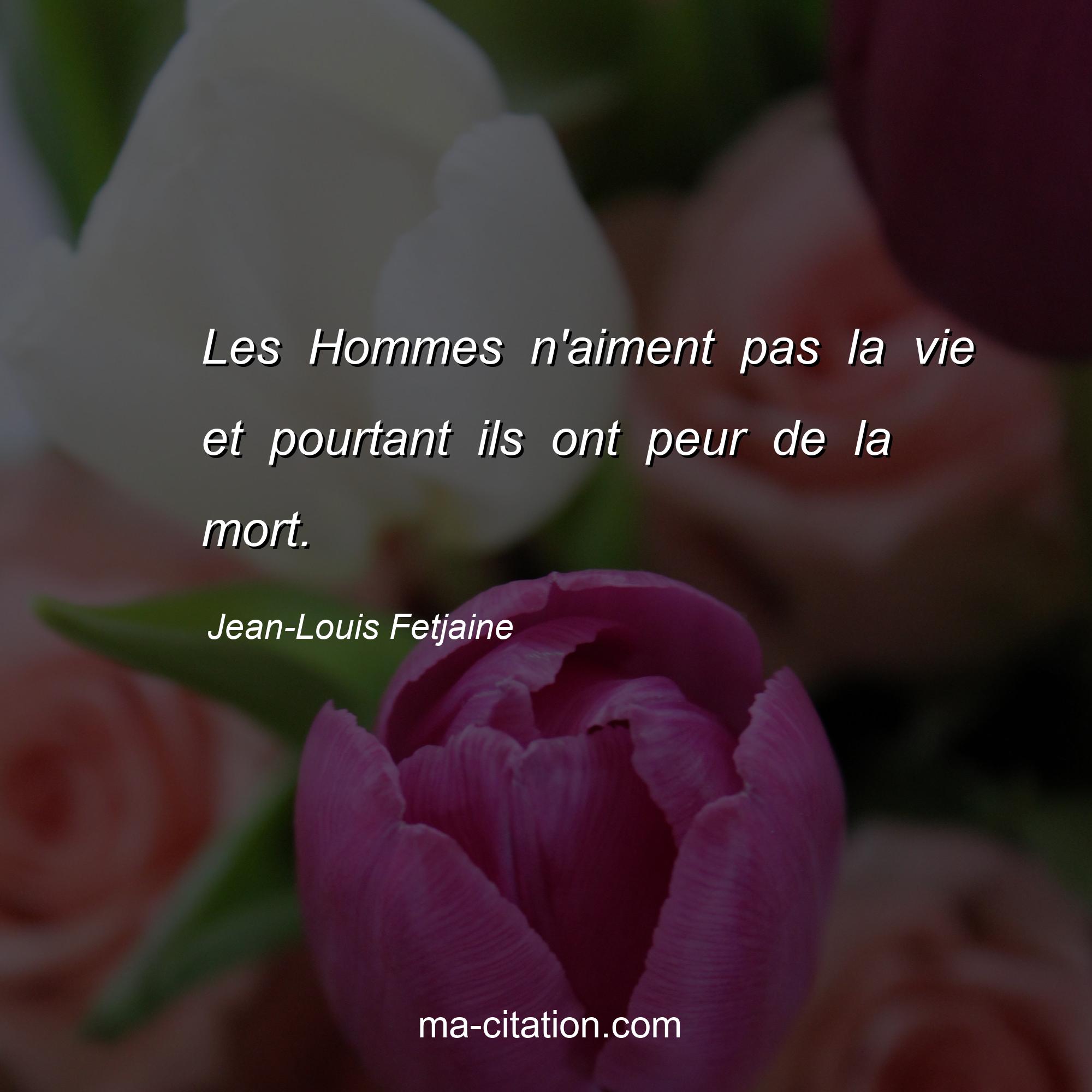 Jean-Louis Fetjaine est l'auteur de la citation sur la vie "Les Hommes n'aiment pas la vie et pourtant ils ont peur de la mort.".