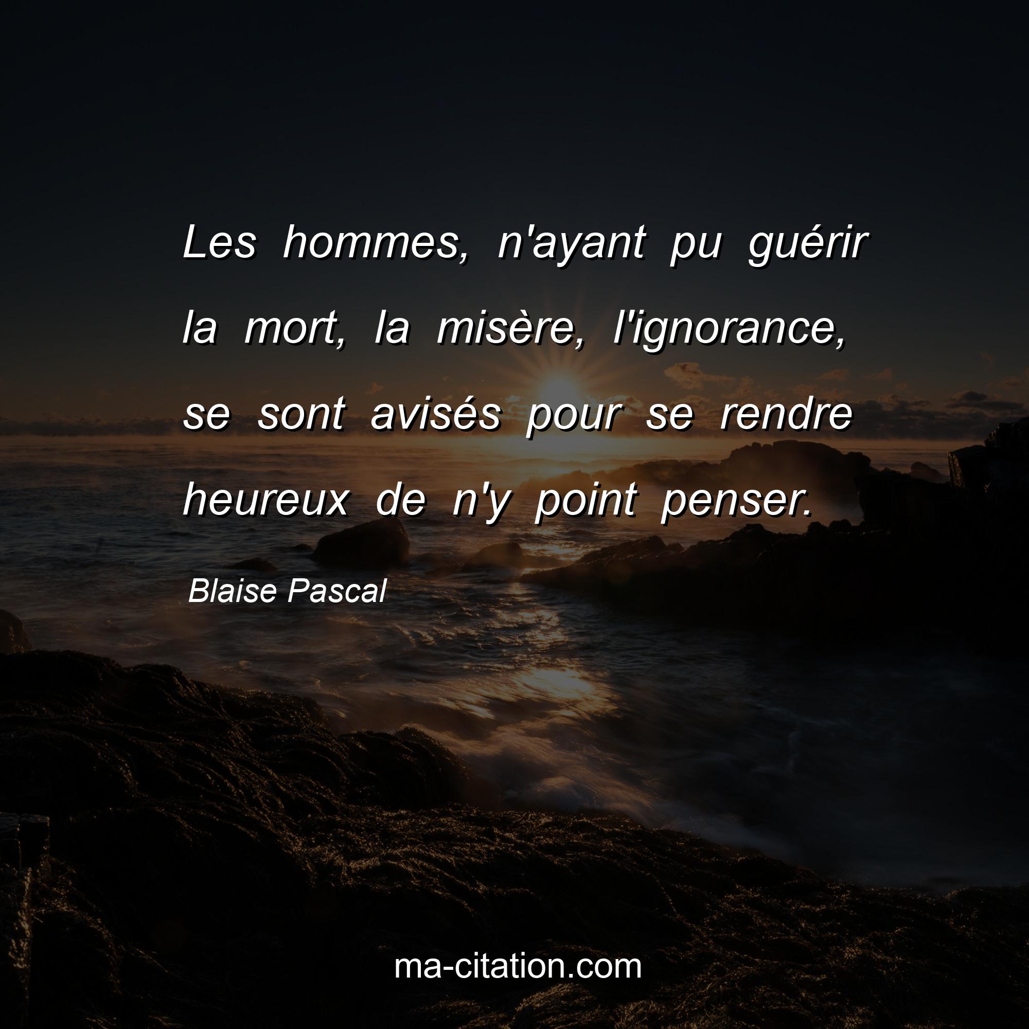 Les hommes, n'ayant pu guérir la mort, la misère, l'ignorance, se sont avisés pour se rendre heureux de n'y point penser.