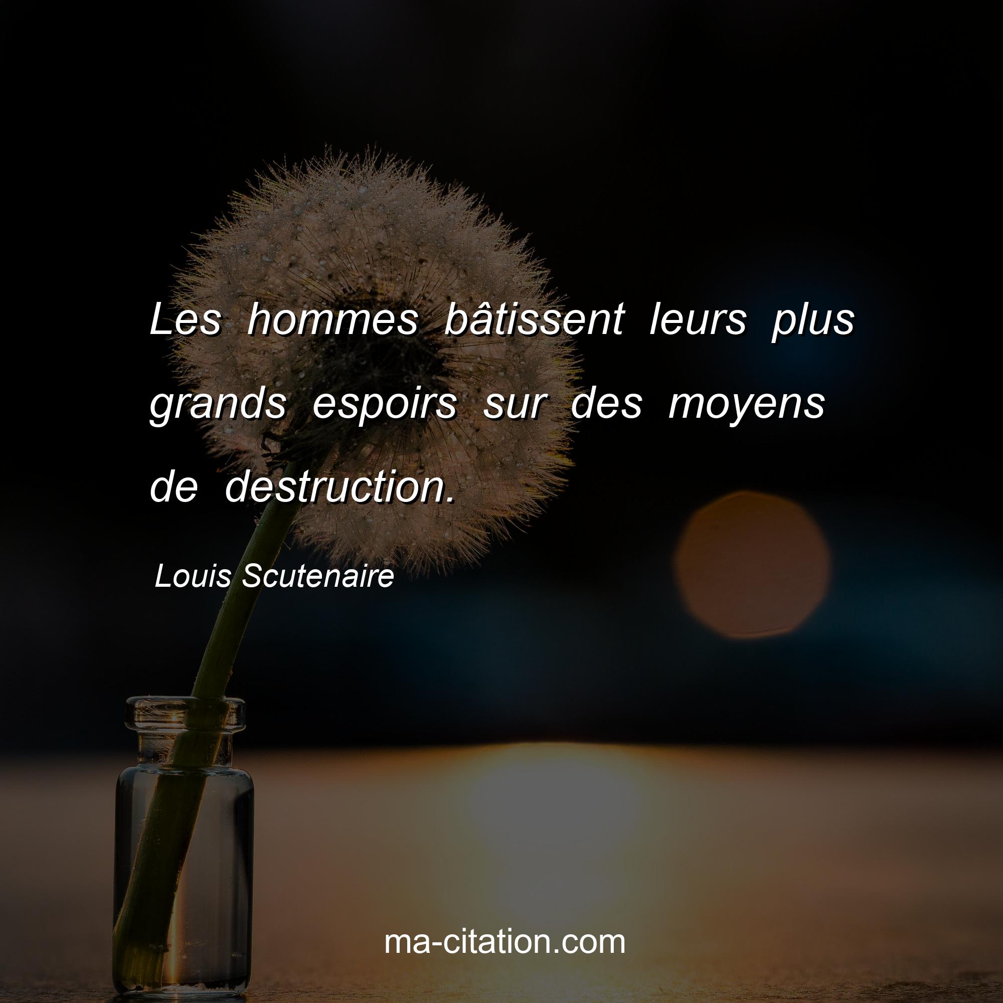 Citation sur la vie de Louis Scutenaire :Les hommes bâtissent leurs plus grands espoirs sur des moyens de destruction.