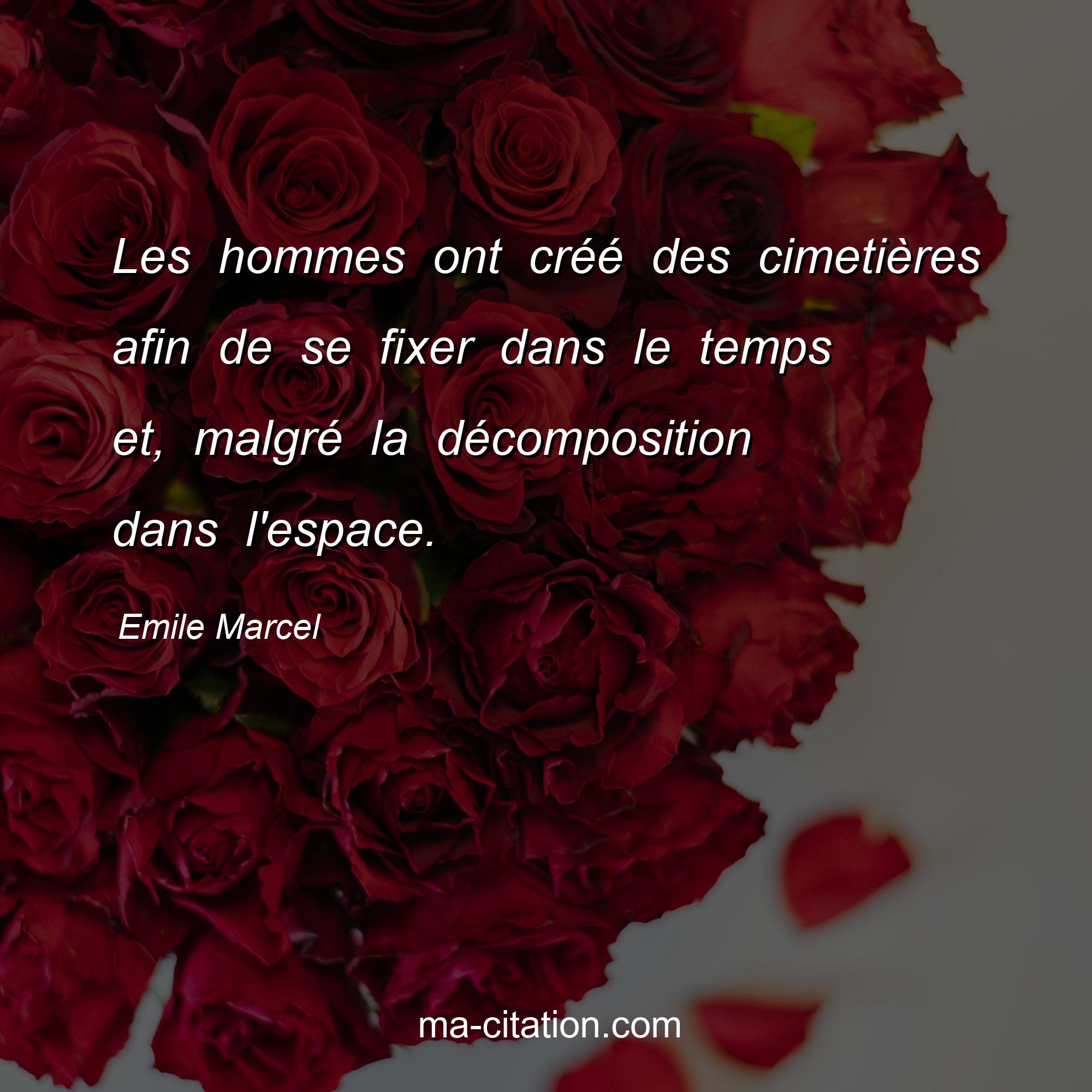 Emile Marcel est l'auteur de la citation sur la vie "Les hommes ont créé des cimetières afin de se fixer dans le temps et, malgré la décomposition dans l'espace.".