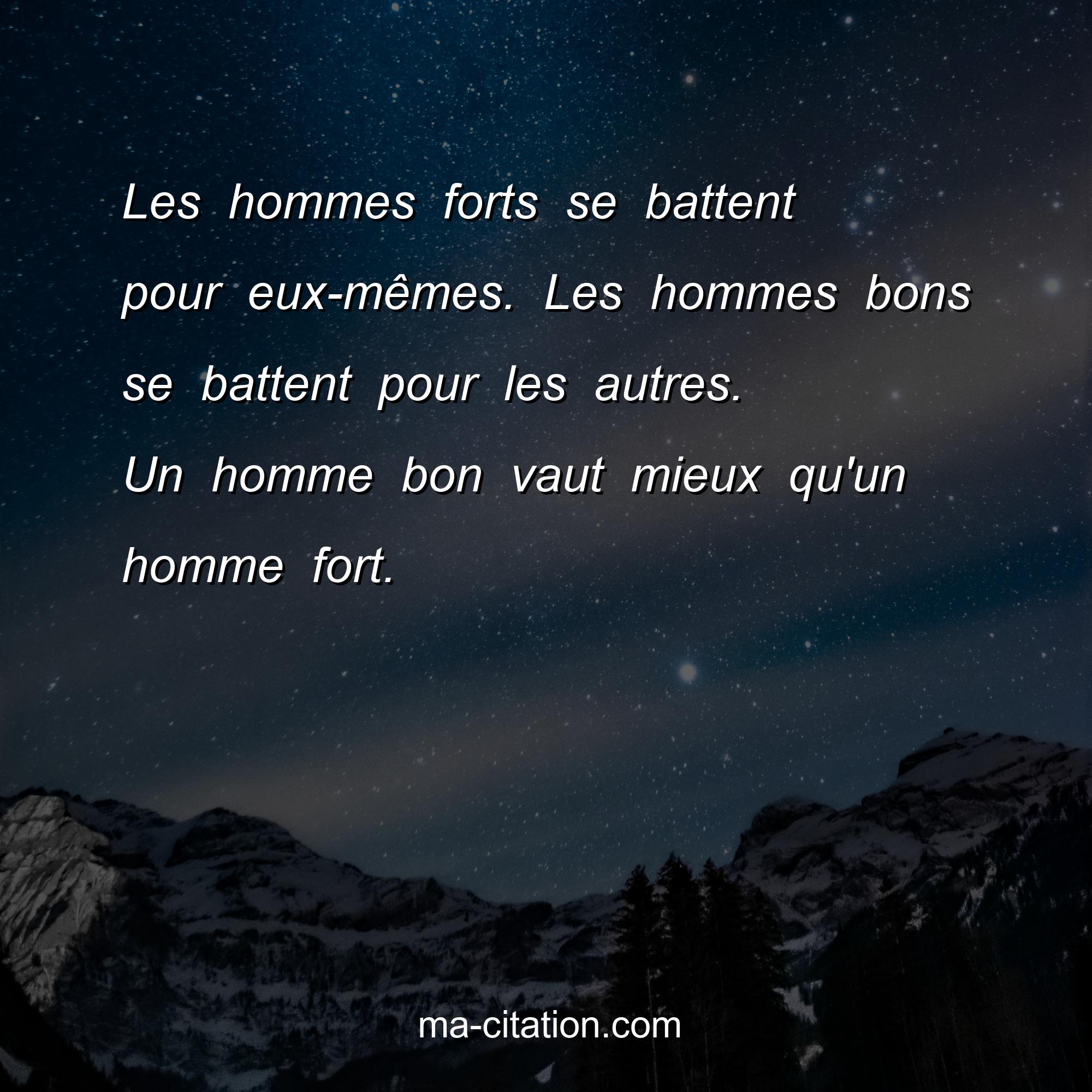 Les hommes forts se battent pour eux-mêmes. Les hommes bons se battent pour les autres. Un homme bon vaut mieux qu'un homme fort.