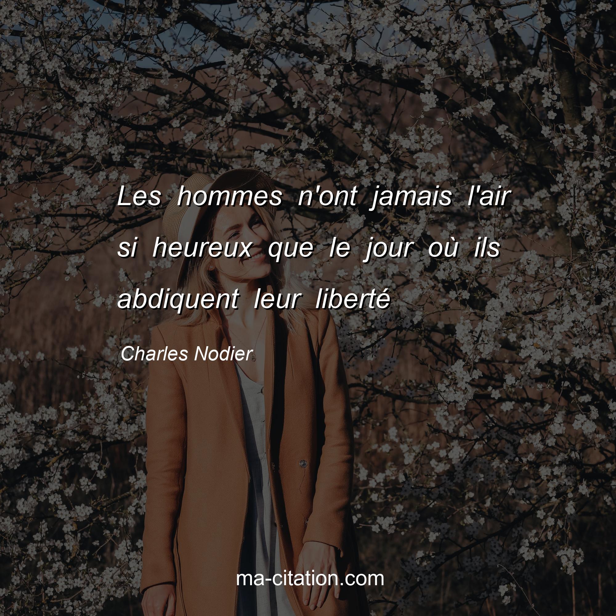 Citation sur la vie de Charles Nodier :Les hommes n'ont jamais l'air si heureux que le jour où ils abdiquent leur liberté