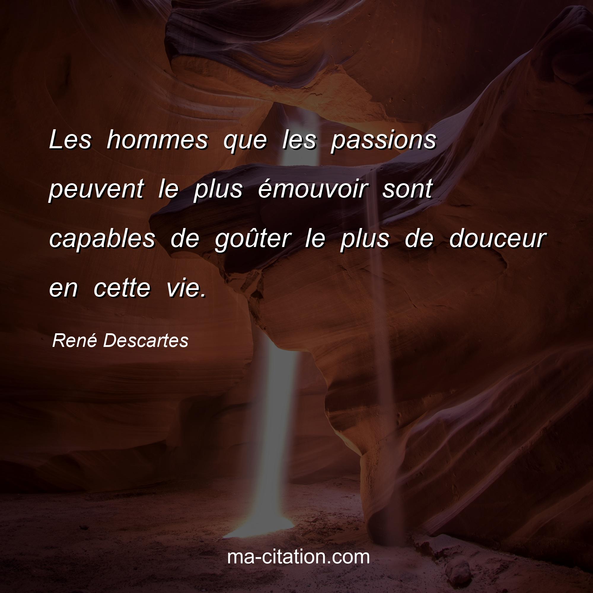 Citation sur la vie de René Descartes :Les hommes que les passions peuvent le plus émouvoir sont capables de goûter le plus de douceur en cette vie.