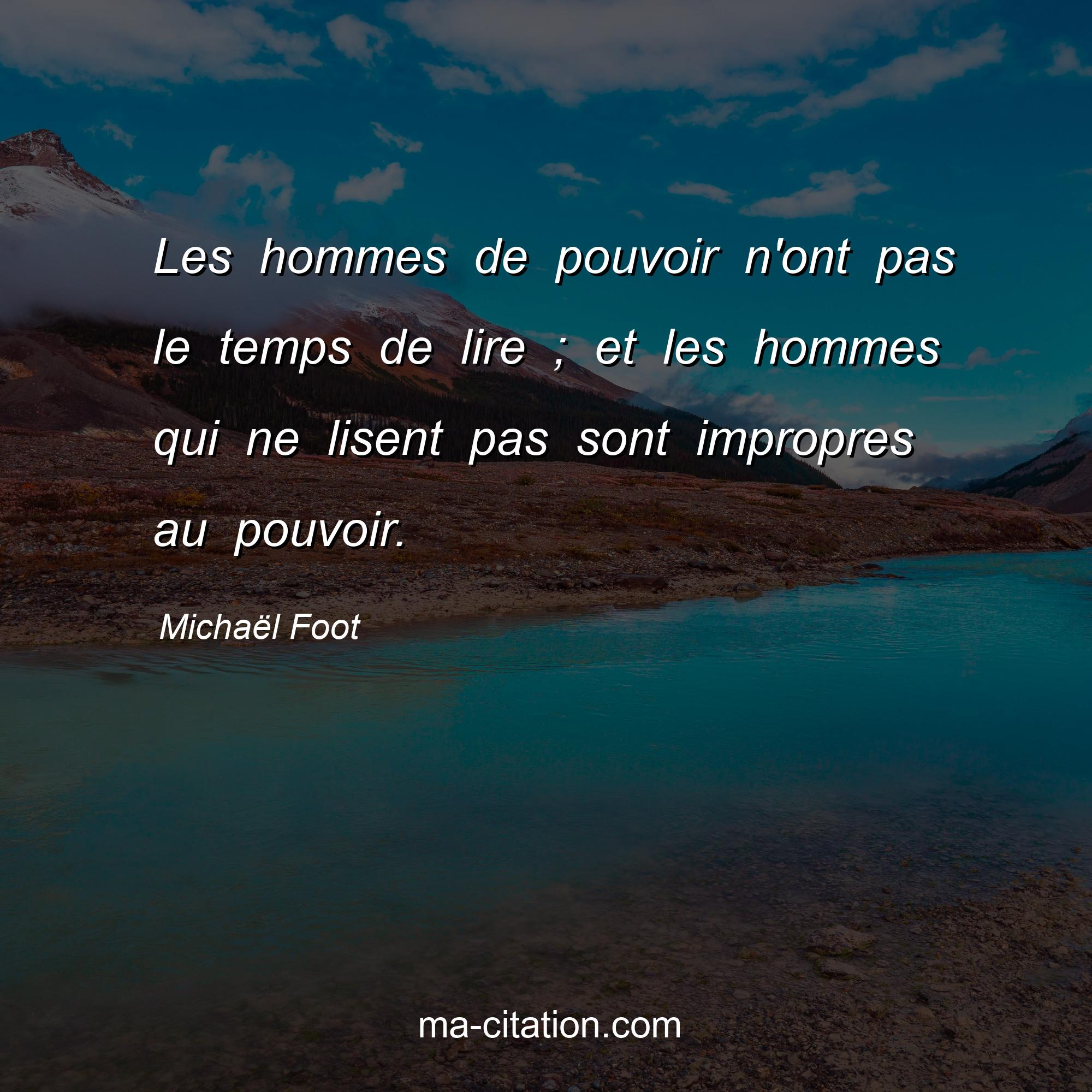 Citation sur la vie de Michaël Foot :Les hommes de pouvoir n'ont pas le temps de lire ; et les hommes qui ne lisent pas sont impropres au pouvoir.