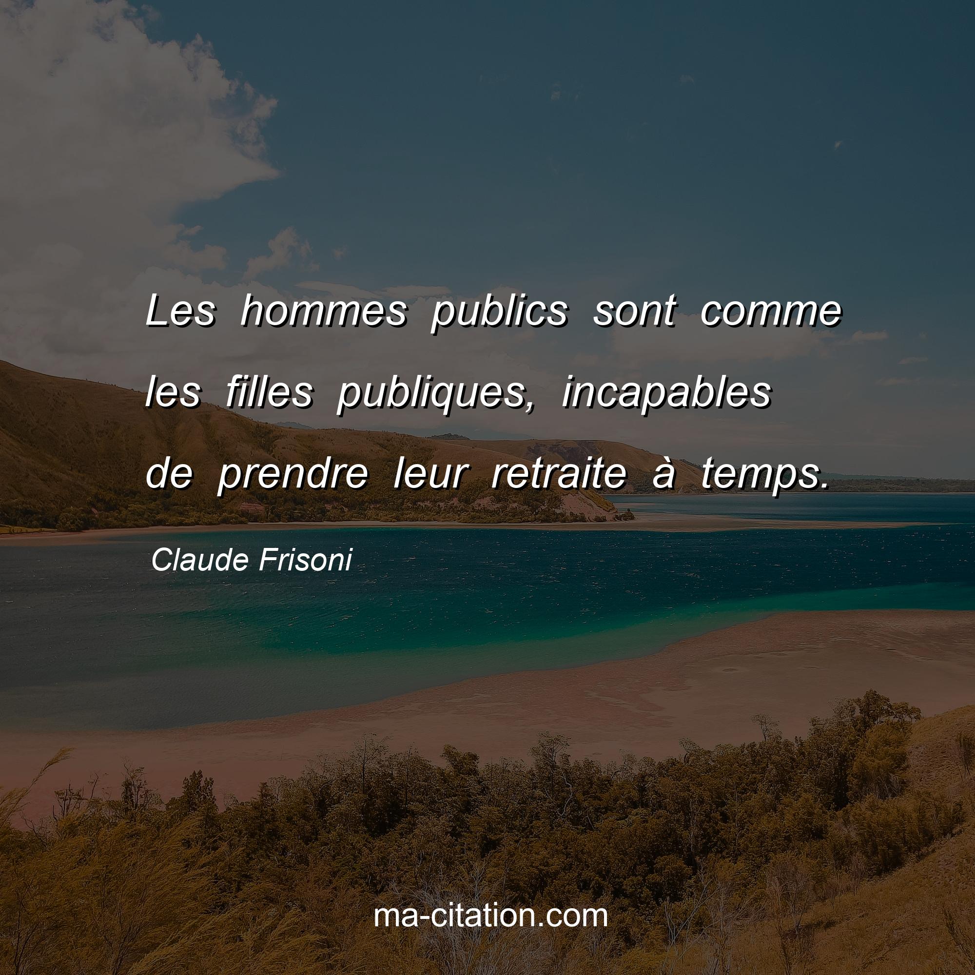Citation sur la vie de Claude Frisoni :Les hommes publics sont comme les filles publiques, incapables de prendre leur retraite à temps.