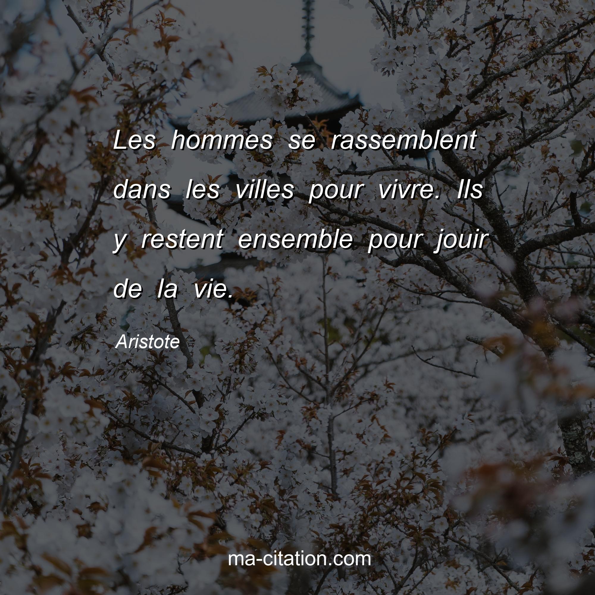 Citation sur la vie d'Aristote :Les hommes se rassemblent dans les villes pour vivre. Ils y restent ensemble pour jouir de la vie.