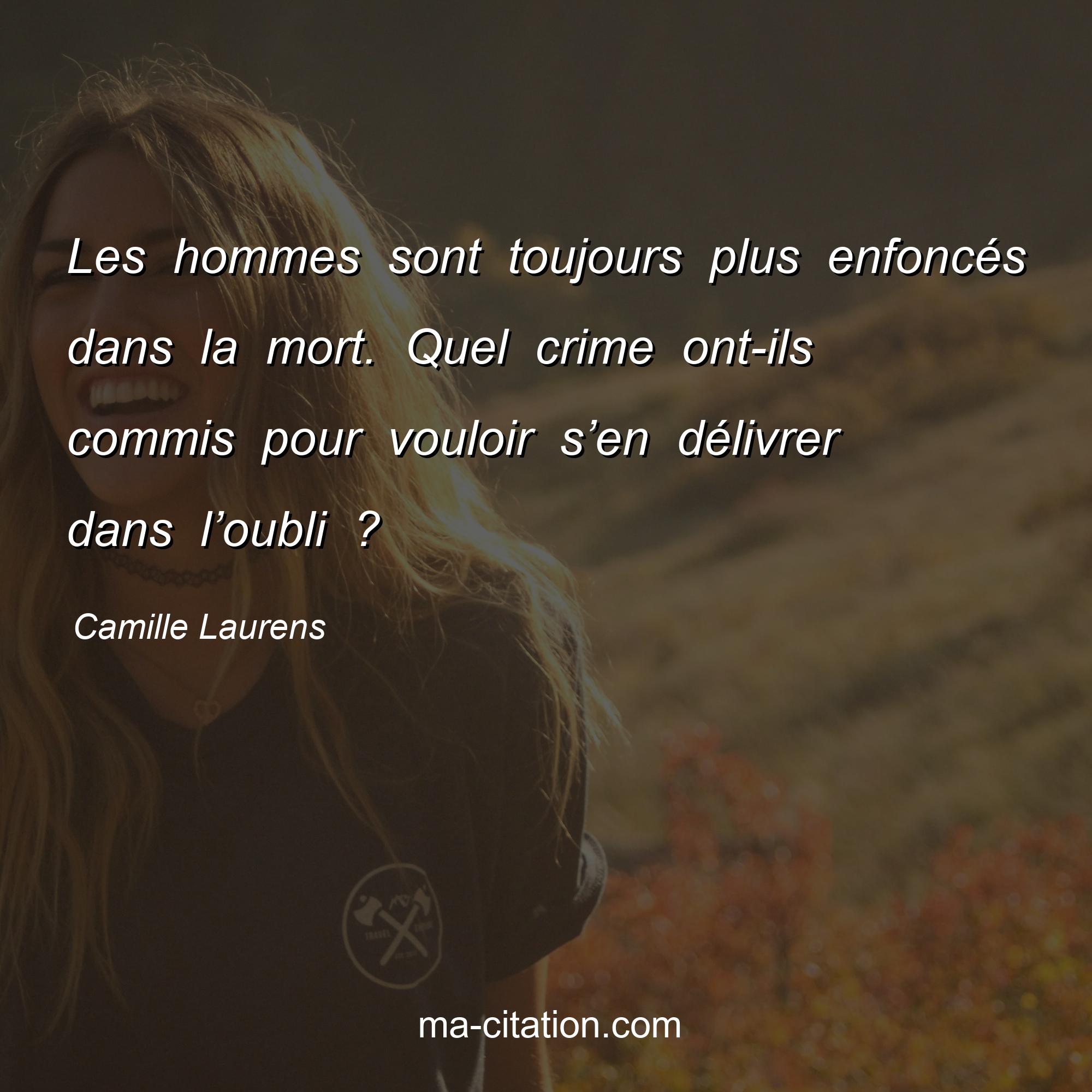Camille Laurens est l'auteur de la citation sur la vie "Les hommes sont toujours plus enfoncés dans la mort. Quel crime ont-ils commis pour vouloir s’en délivrer dans l’oubli ?".