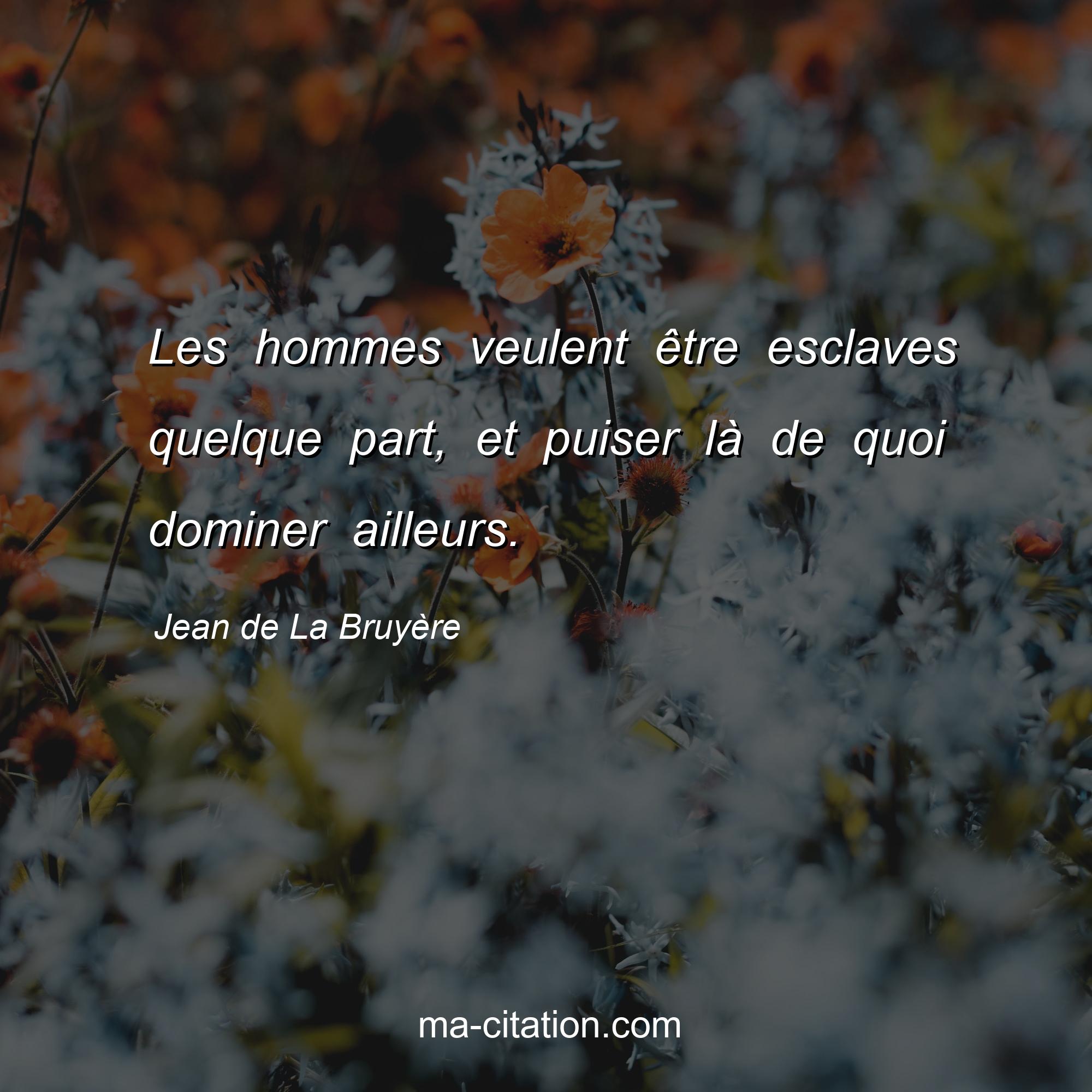 Citation sur la vie de Jean de La Bruyère :Les hommes veulent être esclaves quelque part, et puiser là de quoi dominer ailleurs.