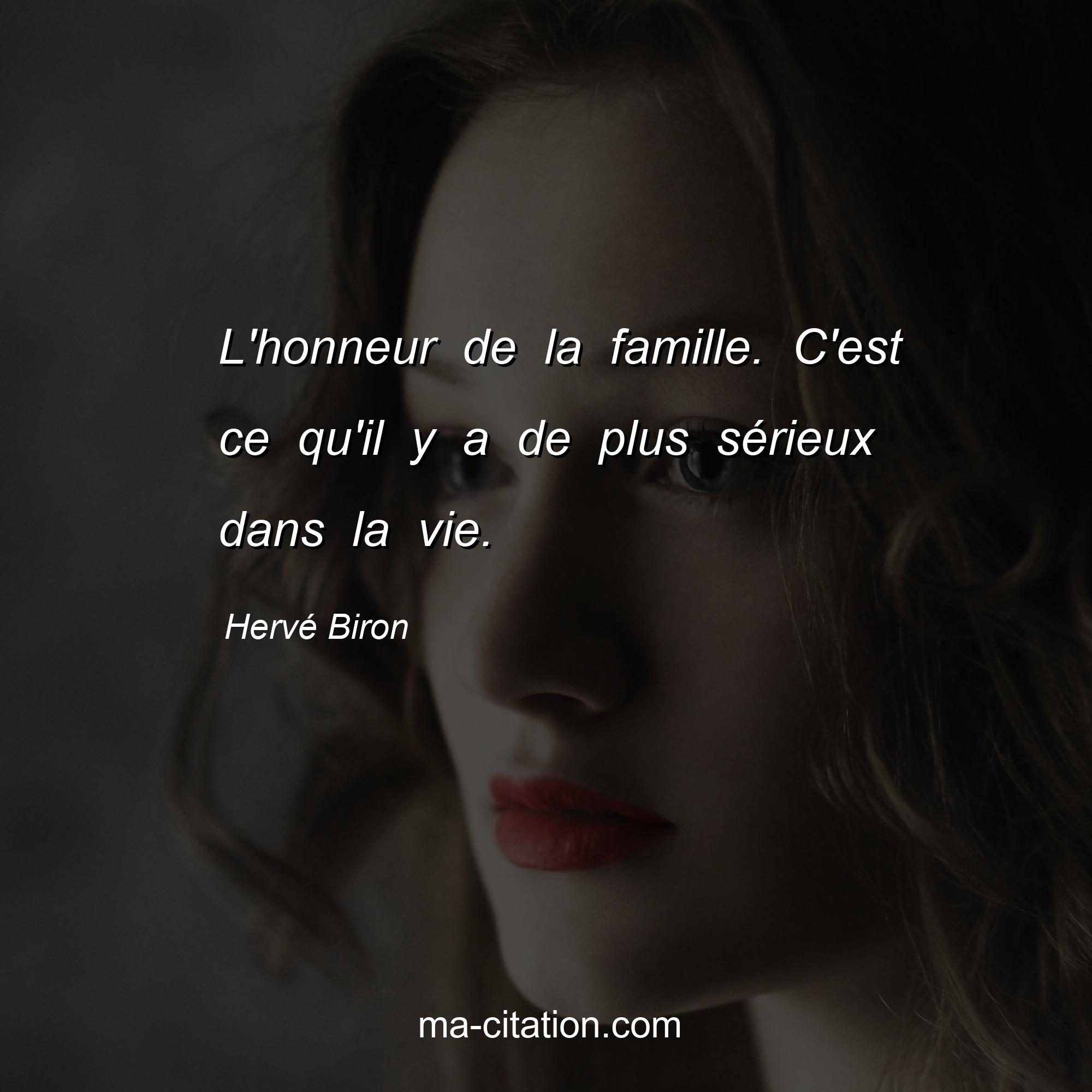 Citation sur la vie de Hervé Biron :L'honneur de la famille. C'est ce qu'il y a de plus sérieux dans la vie.