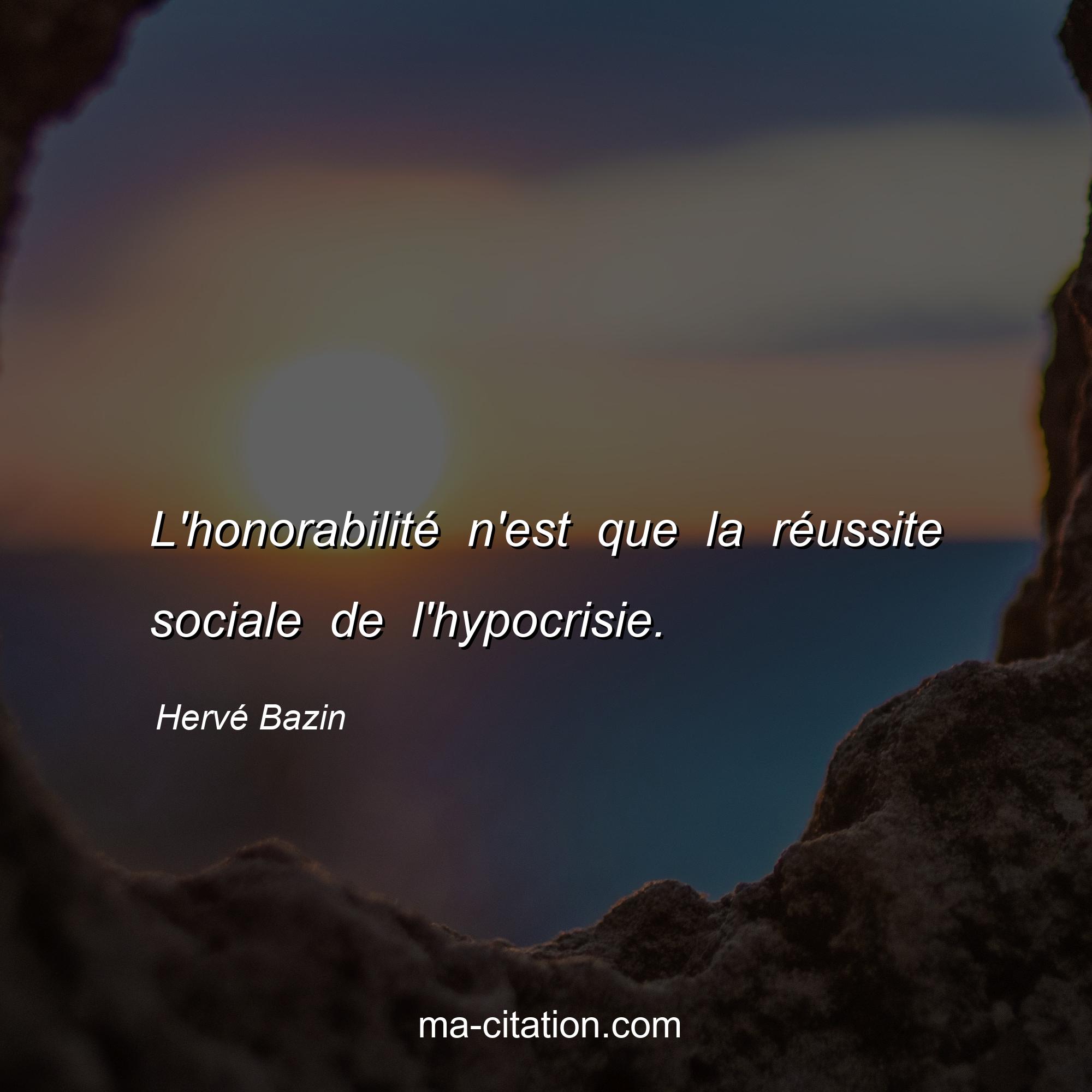 Citation sur la vie de Hervé Bazin :L'honorabilité n'est que la réussite sociale de l'hypocrisie.