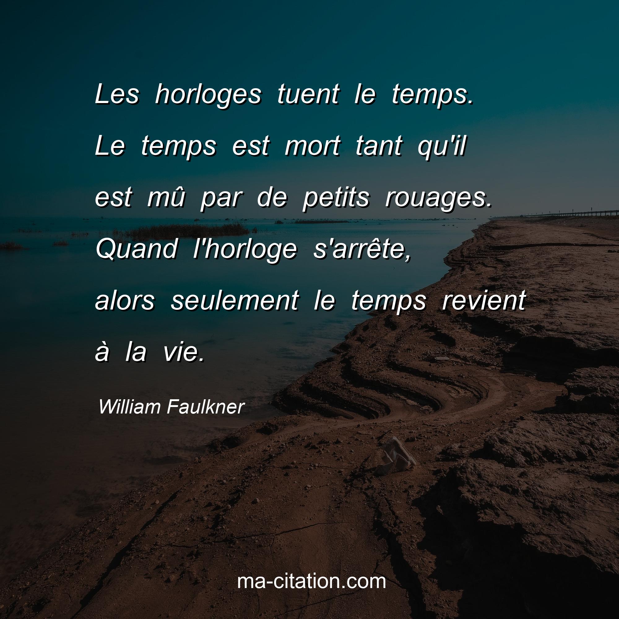 Citation sur la vie de William Faulkner :Les horloges tuent le temps. Le temps est mort tant qu'il est mû par de petits rouages. Quand l'horloge s'arrête, alors seulement le temps revient à la vie.