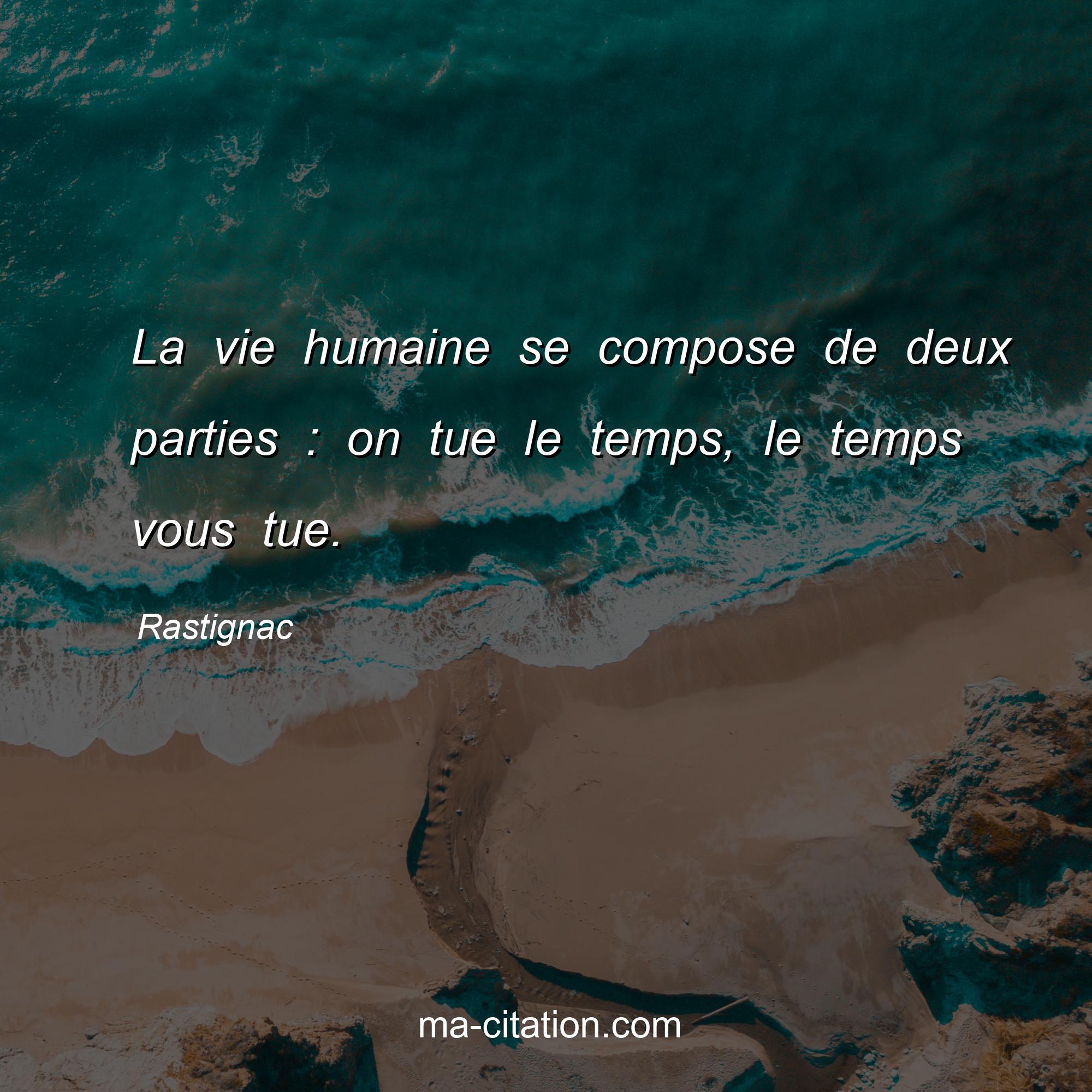 Citation sur la vie de Rastignac :La vie humaine se compose de deux parties : on tue le temps, le temps vous tue.
