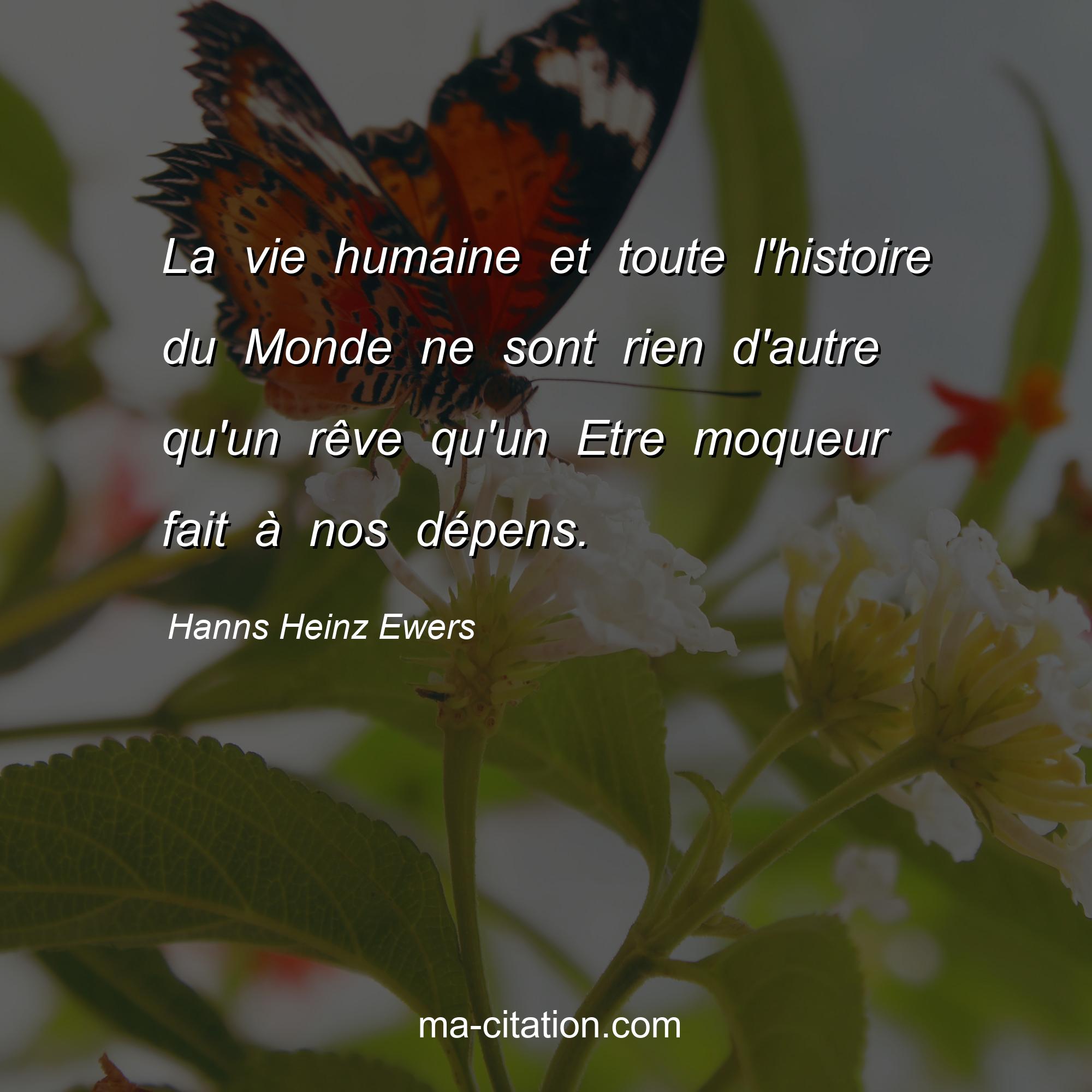 Citation sur la vie de Hanns Heinz Ewers :La vie humaine et toute l'histoire du Monde ne sont rien d'autre qu'un rêve qu'un Etre moqueur fait à nos dépens.