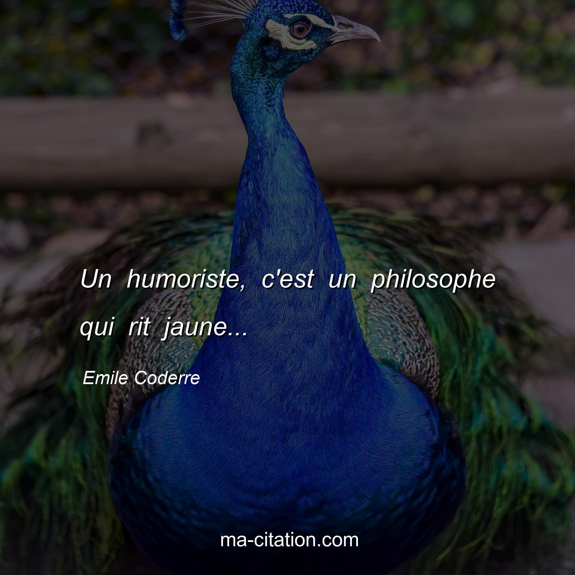 Citation sur la vie d'Emile Coderre :Un humoriste, c'est un philosophe qui rit jaune...