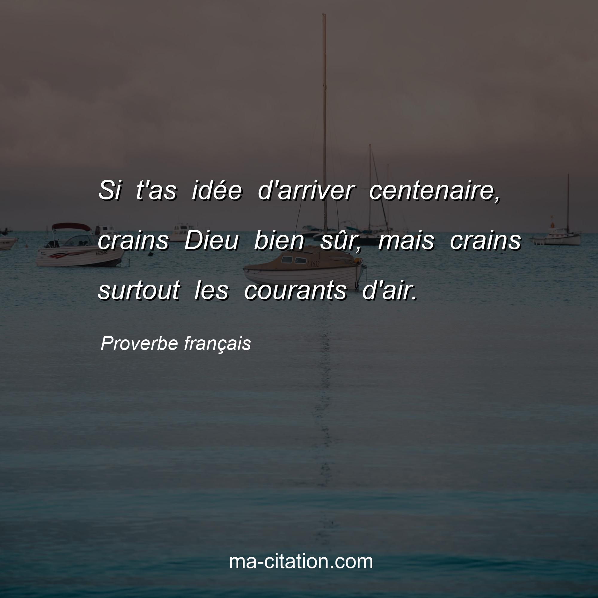 Proverbe français sur la vie :Si t'as idée d'arriver centenaire, crains Dieu bien sûr, mais crains surtout les courants d'air.