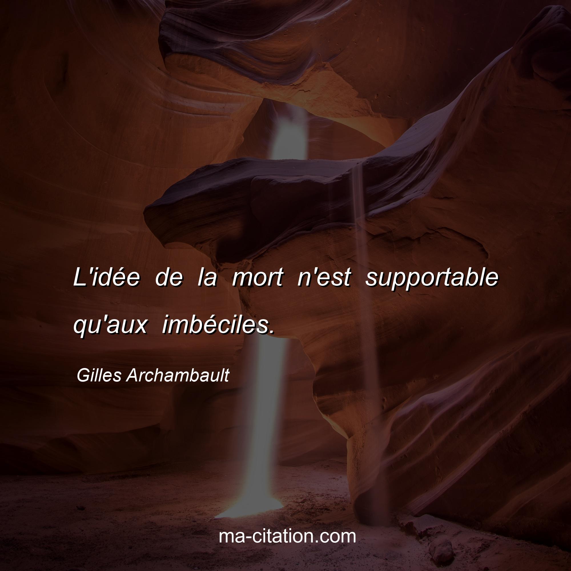 Citation sur la vie de Gilles Archambault :L'idée de la mort n'est supportable qu'aux imbéciles.