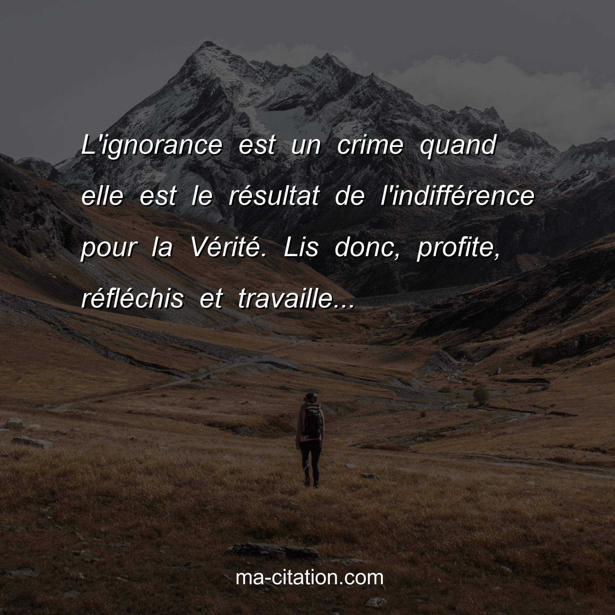 L'ignorance est un crime quand elle est le résultat de l'indifférence pour la Vérité. Lis donc, profite, réfléchis et travaille...