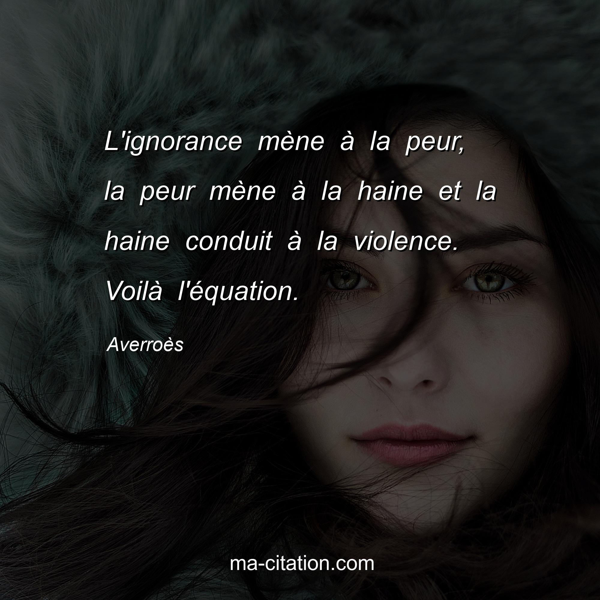 Citation sur la vie d'Averroès :L'ignorance mène à la peur, la peur mène à la haine et la haine conduit à la violence. Voilà l'équation.