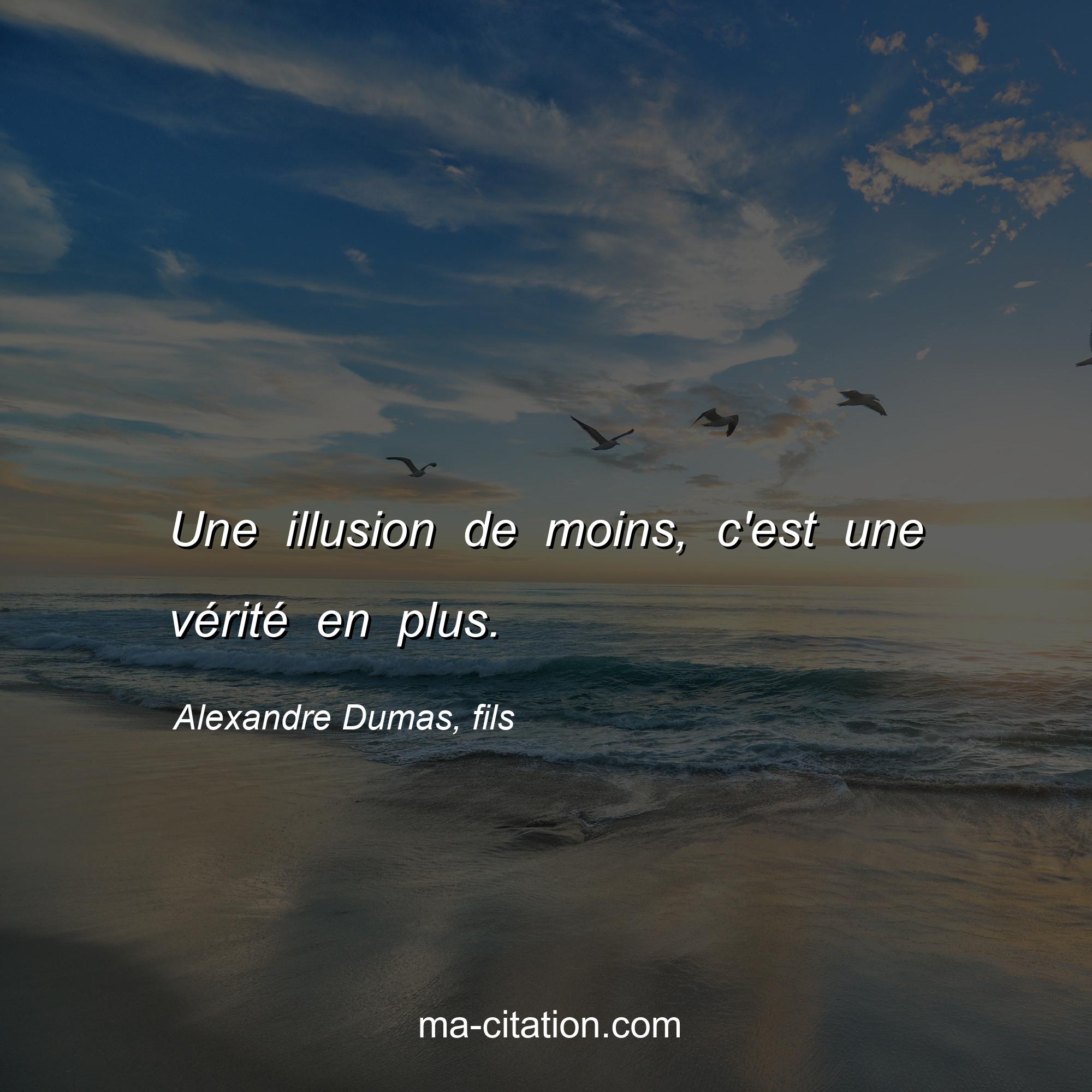 Alexandre Dumas, fils est l'auteur de la citation sur la vie "Une illusion de moins, c'est une vérité en plus.".