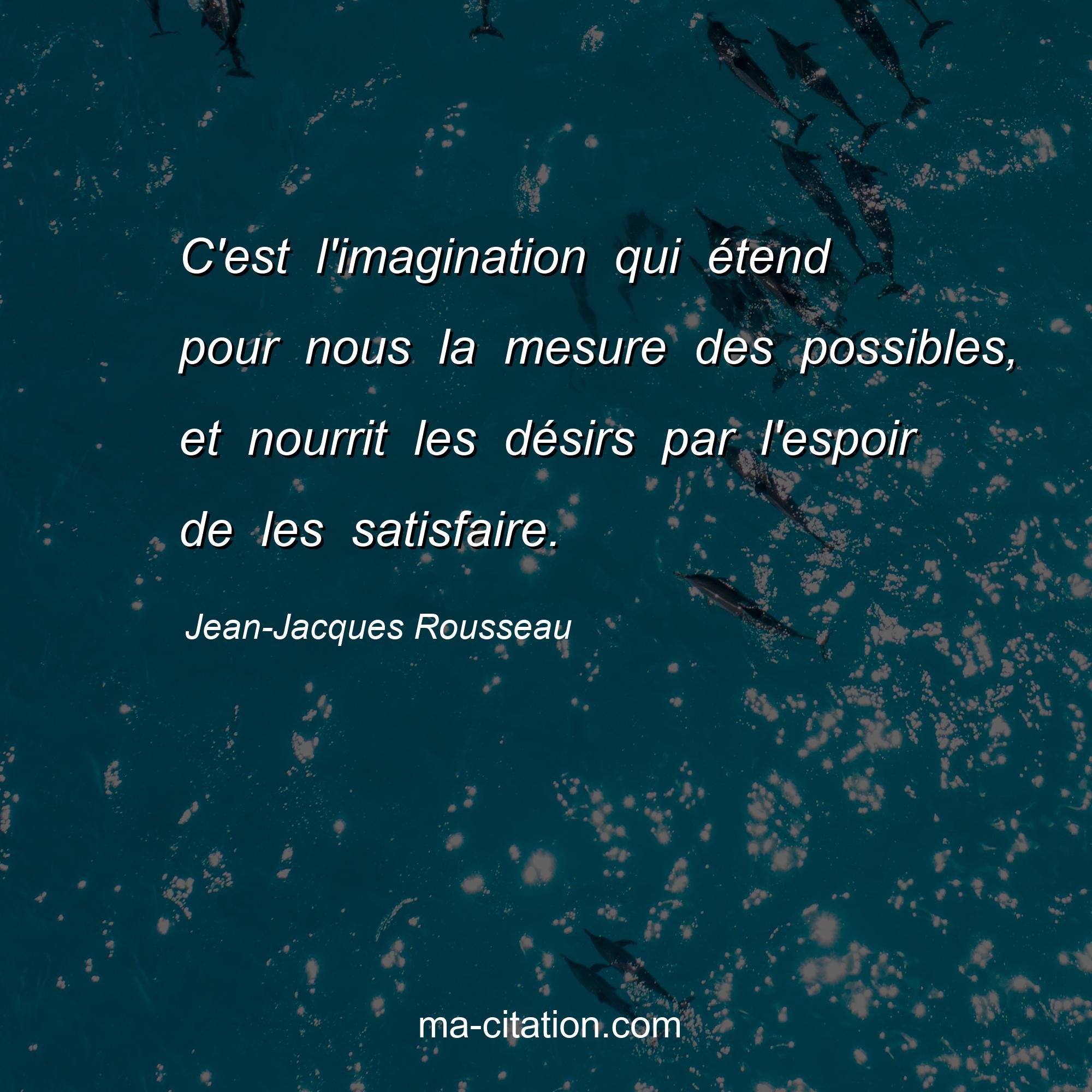 Citation sur la vie de Jean-Jacques Rousseau :C'est l'imagination qui étend pour nous la mesure des possibles, et nourrit les désirs par l'espoir de les satisfaire.