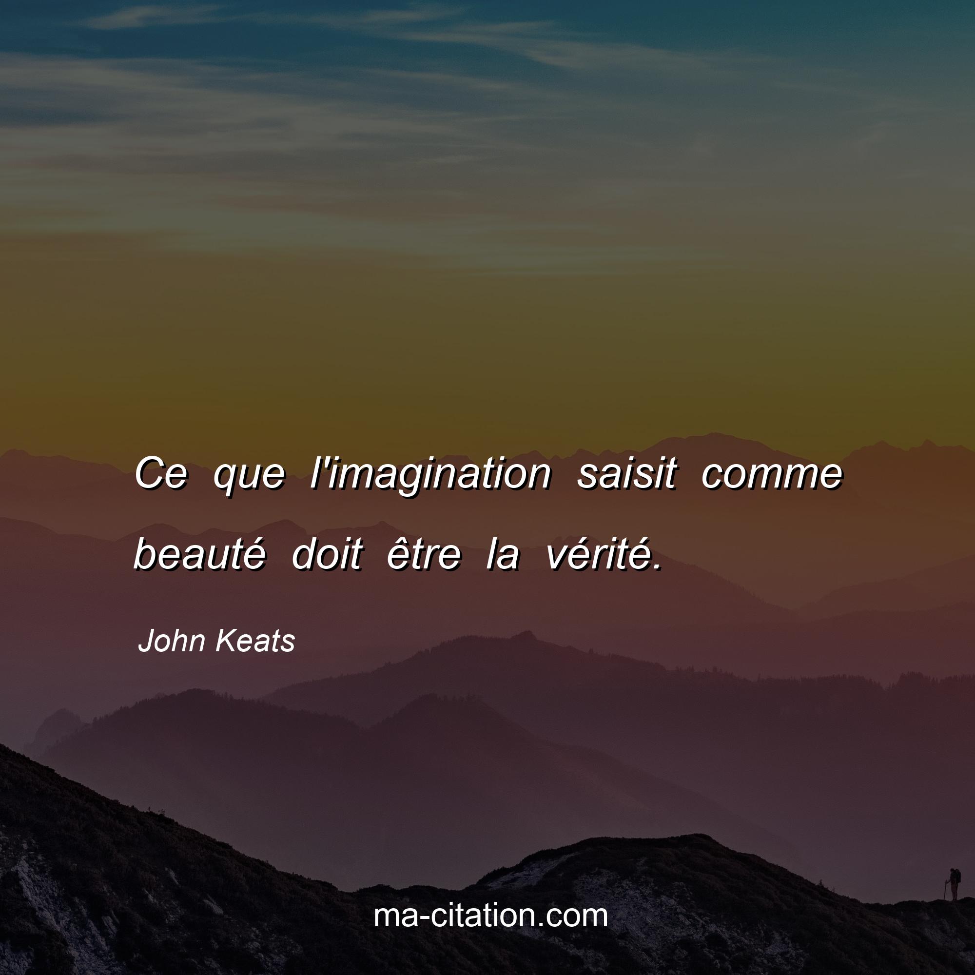 Citation sur la vie de John Keats :Ce que l'imagination saisit comme beauté doit être la vérité.