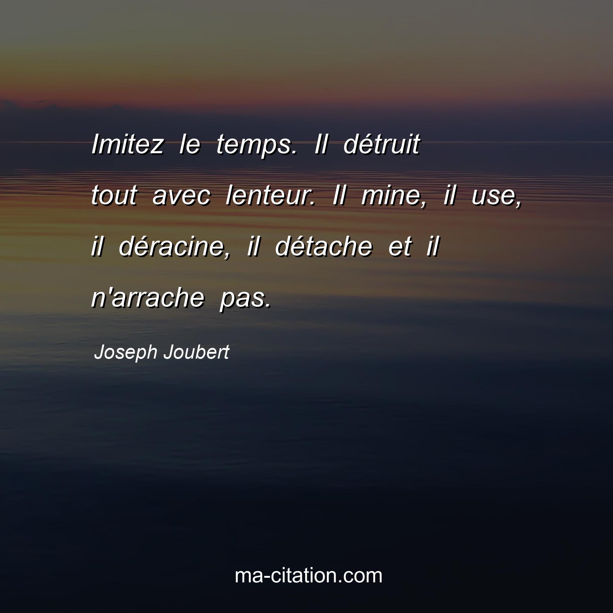Citation sur la vie de Joseph Joubert :Imitez le temps. Il détruit tout avec lenteur. Il mine, il use, il déracine, il détache et il n'arrache pas.