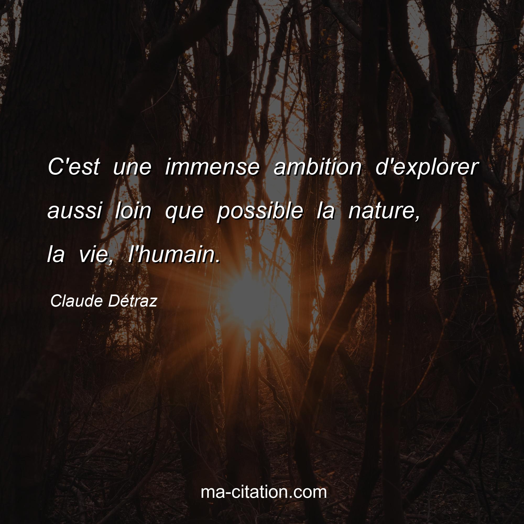 Citation sur la vie de Claude Détraz :C'est une immense ambition d'explorer aussi loin que possible la nature, la vie, l'humain.