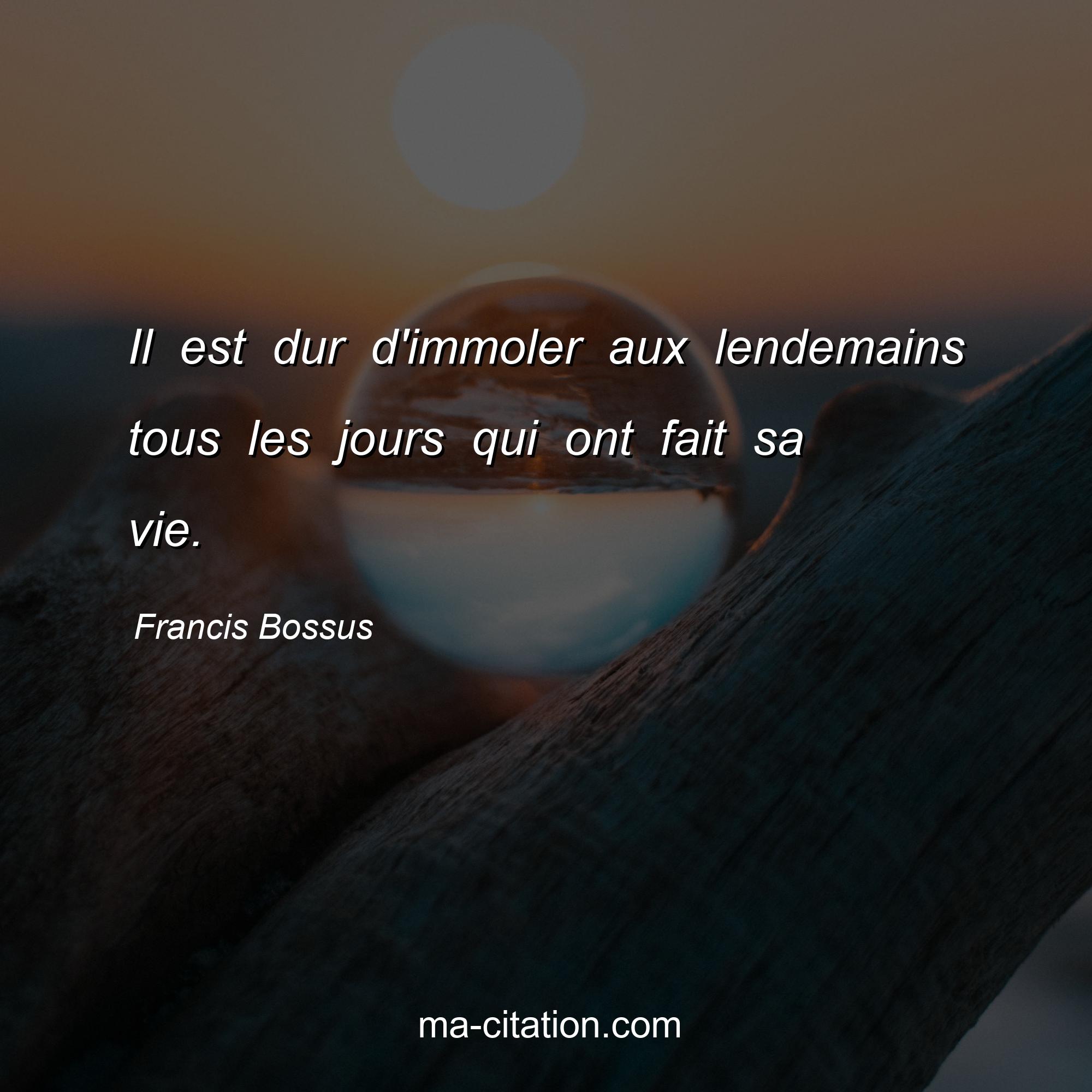 Francis Bossus est l'auteur de la citation sur la vie "Il est dur d'immoler aux lendemains tous les jours qui ont fait sa vie.".