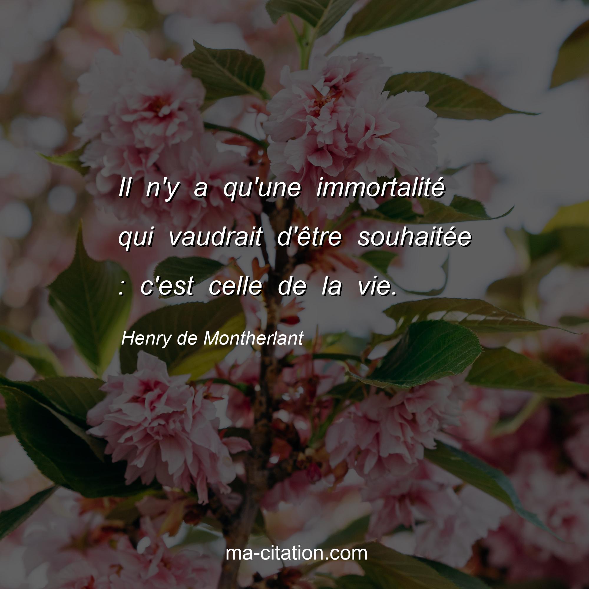 Citation sur la vie de Henry de Montherlant :Il n'y a qu'une immortalité qui vaudrait d'être souhaitée : c'est celle de la vie.