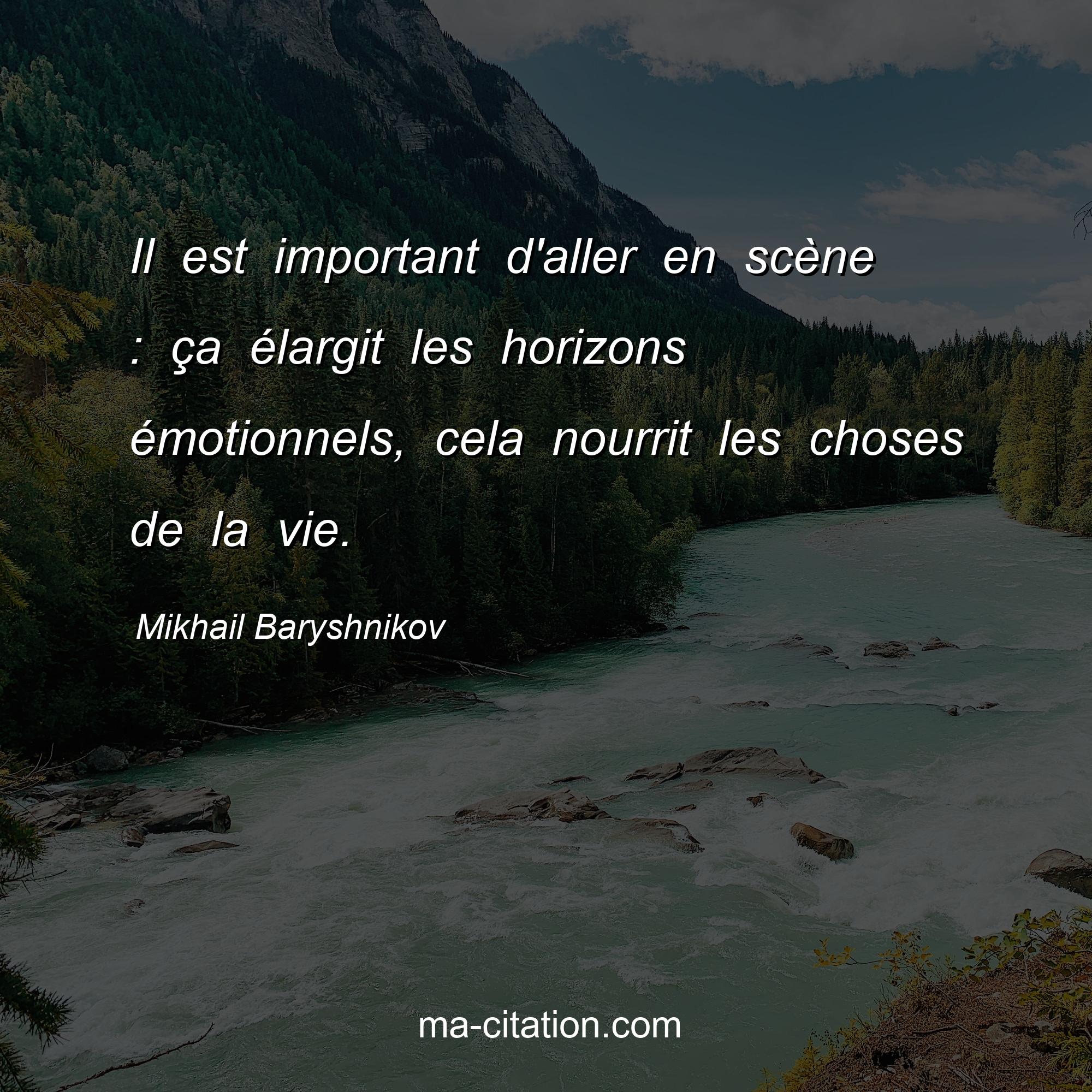 Citation sur la vie de Mikhail Baryshnikov :Il est important d'aller en scène : ça élargit les horizons émotionnels, cela nourrit les choses de la vie.
