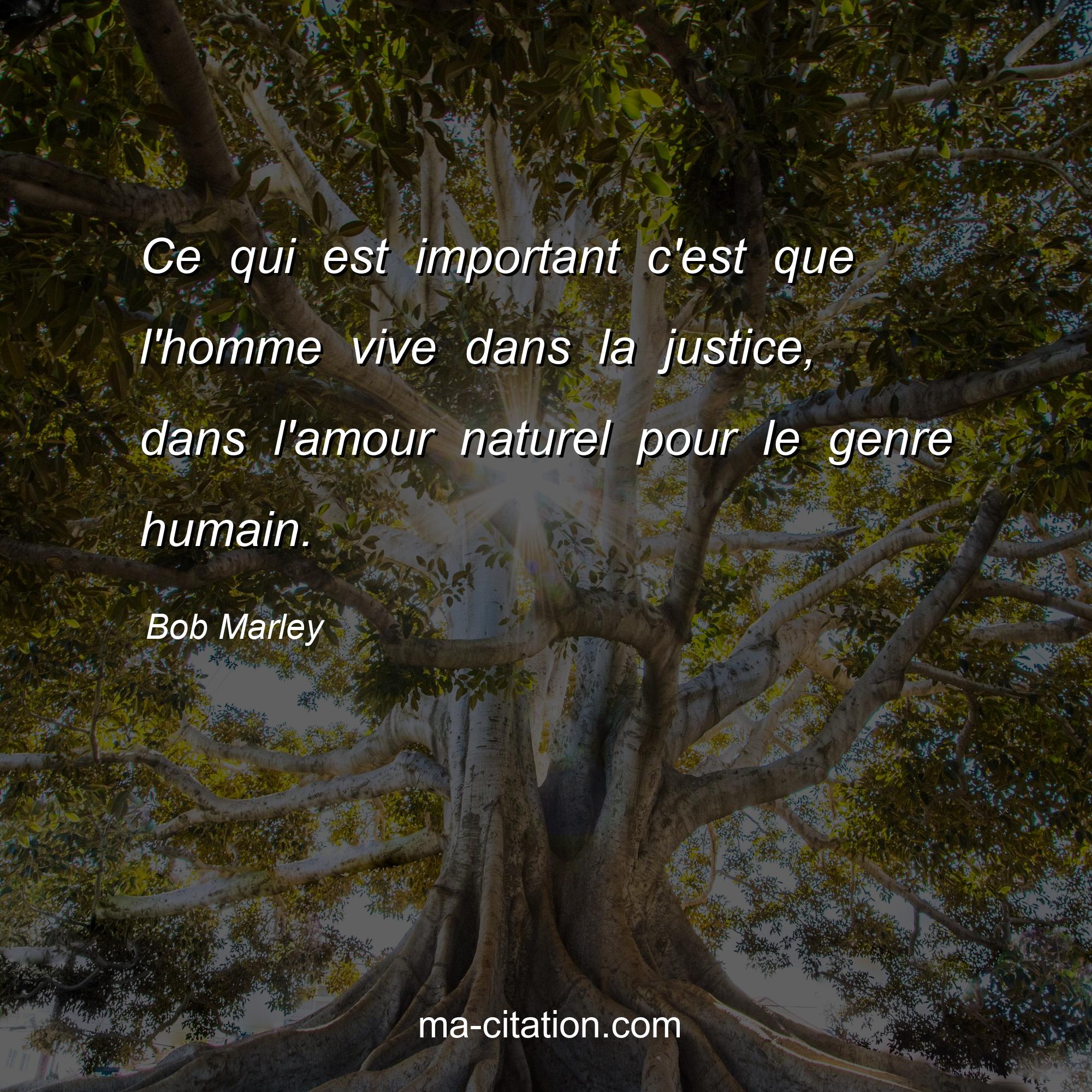 Citation sur la vie de Bob Marley :Ce qui est important c'est que l'homme vive dans la justice, dans l'amour naturel pour le genre humain.