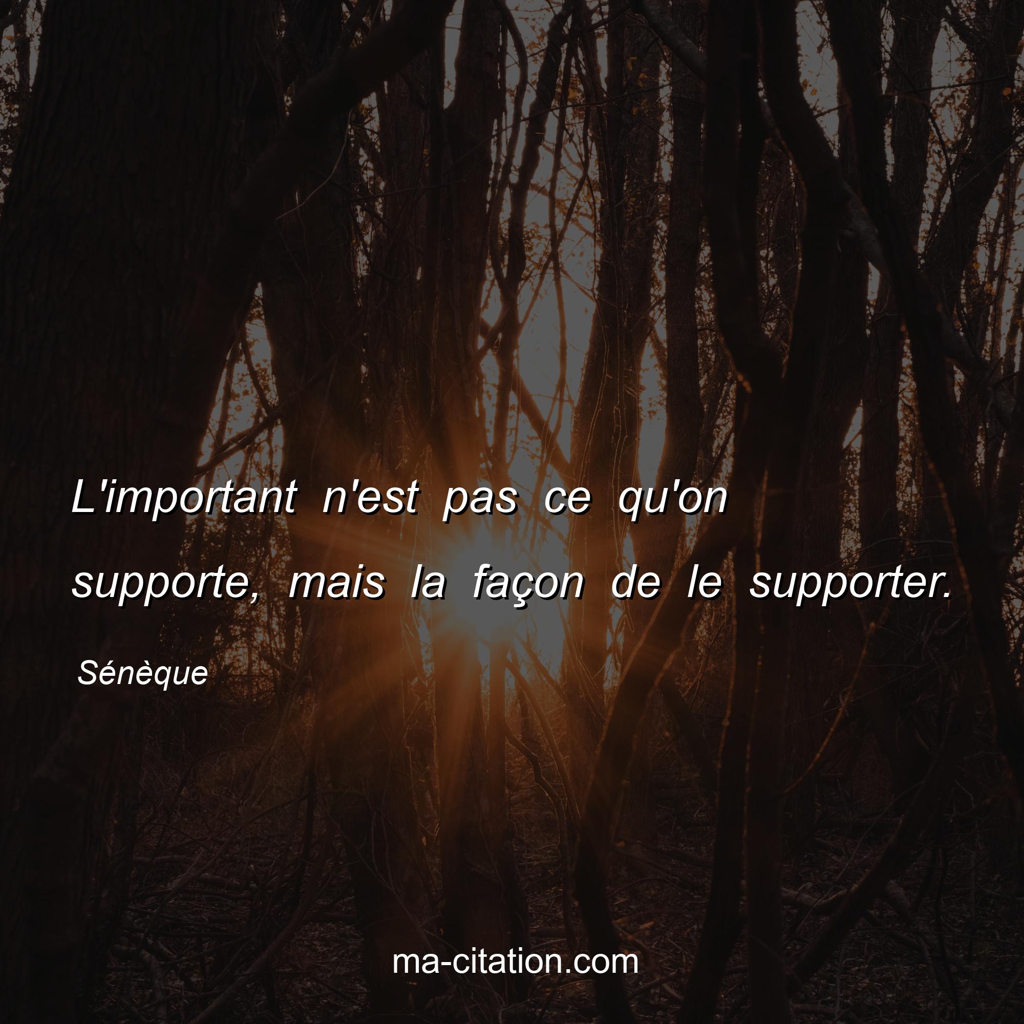 Sénèque est l'auteur de la citation sur la vie "L'important n'est pas ce qu'on supporte, mais la façon de le supporter.".
