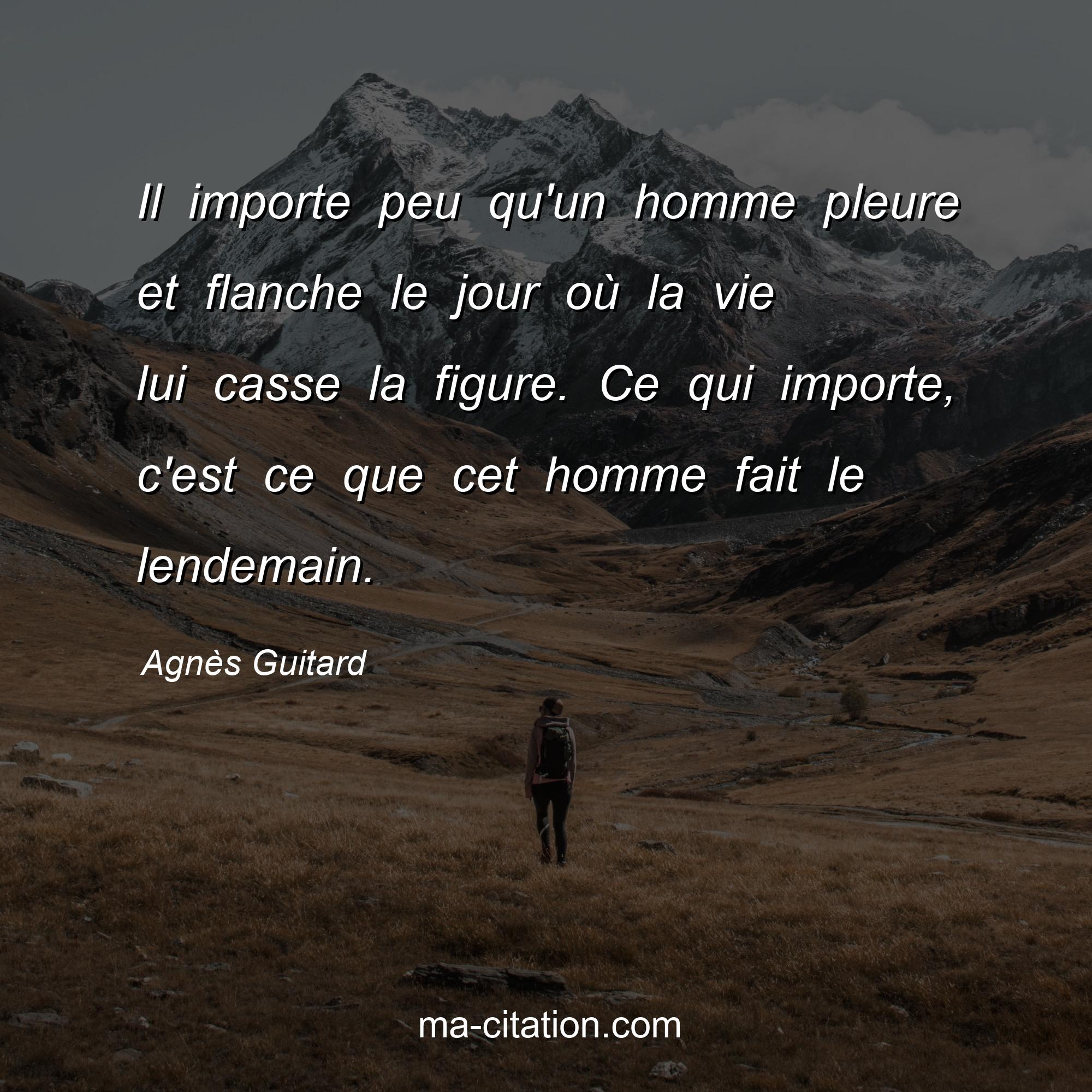 Citation sur la vie d'Agnès Guitard :Il importe peu qu'un homme pleure et flanche le jour où la vie lui casse la figure. Ce qui importe, c'est ce que cet homme fait le lendemain.