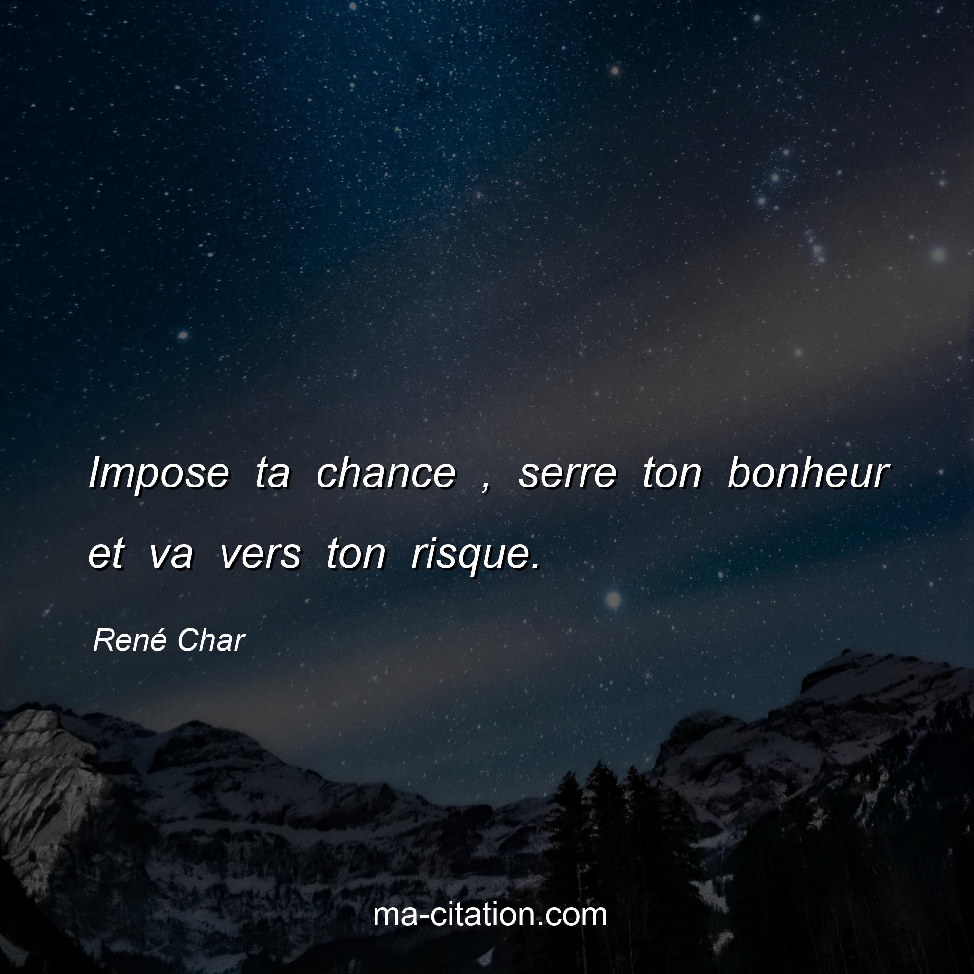 Citation sur la vie de René Char :Impose ta chance, serre ton bonheur et va vers ton risque. A te regarder, ils s’habitueront.
