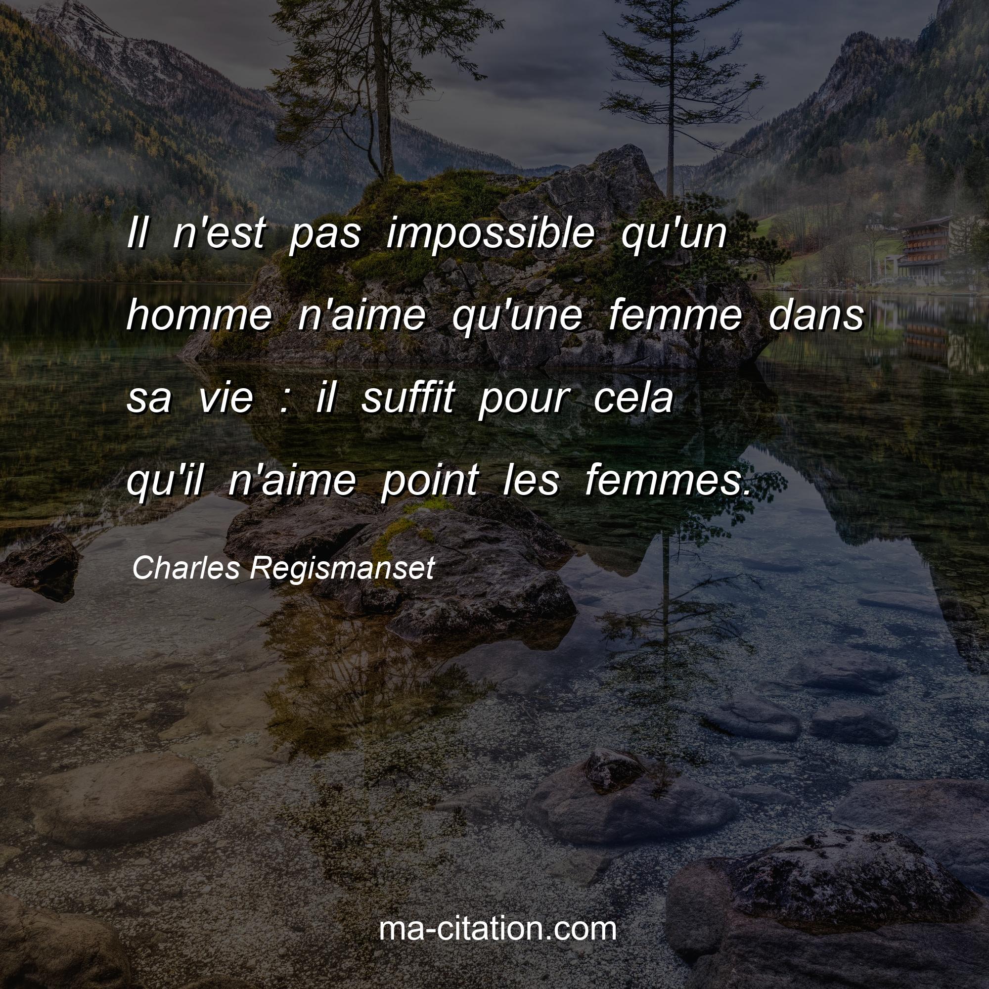 Citation sur la vie de Charles Regismanset :Il n'est pas impossible qu'un homme n'aime qu'une femme dans sa vie : il suffit pour cela qu'il n'aime point les femmes.