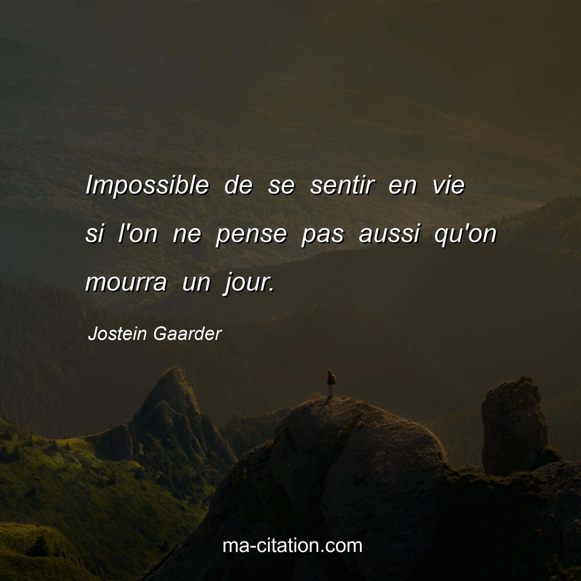Citation sur la vie de Jostein Gaarder :Impossible de se sentir en vie si l'on ne pense pas aussi qu'on mourra un jour.