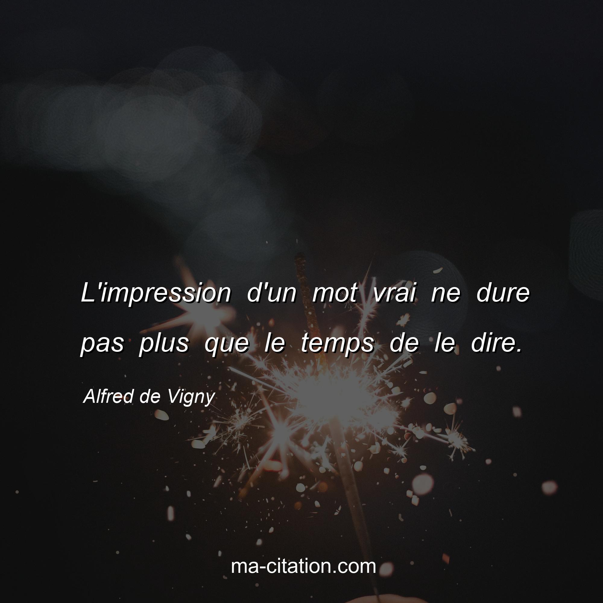 Citation sur la vie d'Alfred de Vigny :L'impression d'un mot vrai ne dure pas plus que le temps de le dire.