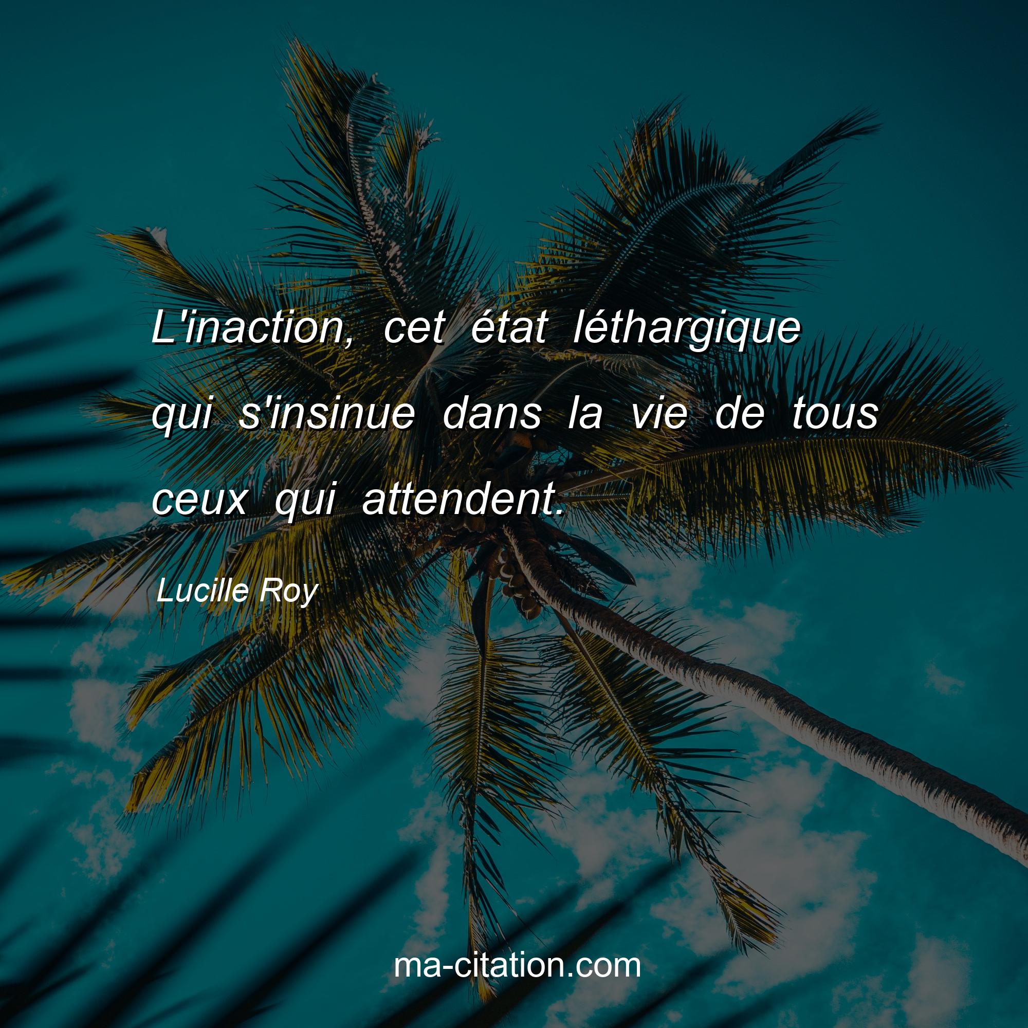 Lucille Roy est l'auteur de la citation sur la vie "L'inaction, cet état léthargique qui s'insinue dans la vie de tous ceux qui attendent.".