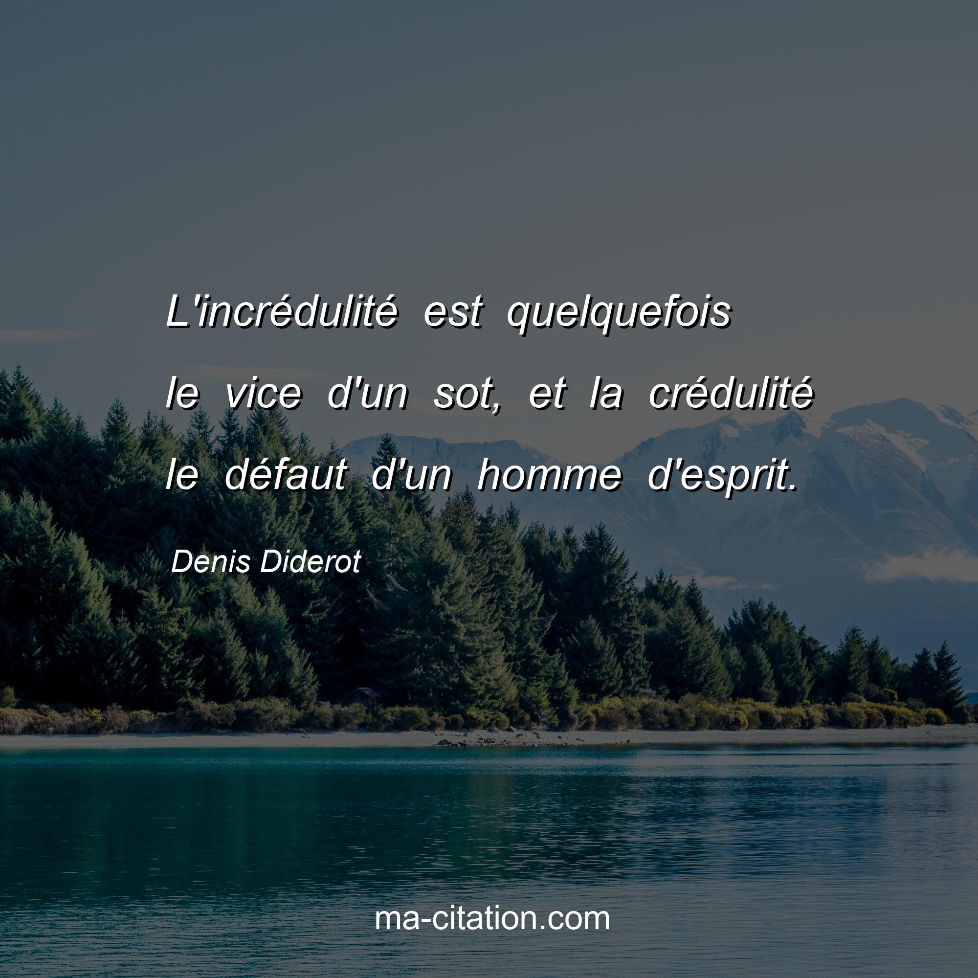 Citation sur la vie de Denis Diderot :L'incrédulité est quelquefois le vice d'un sot, et la crédulité le défaut d'un homme d'esprit.