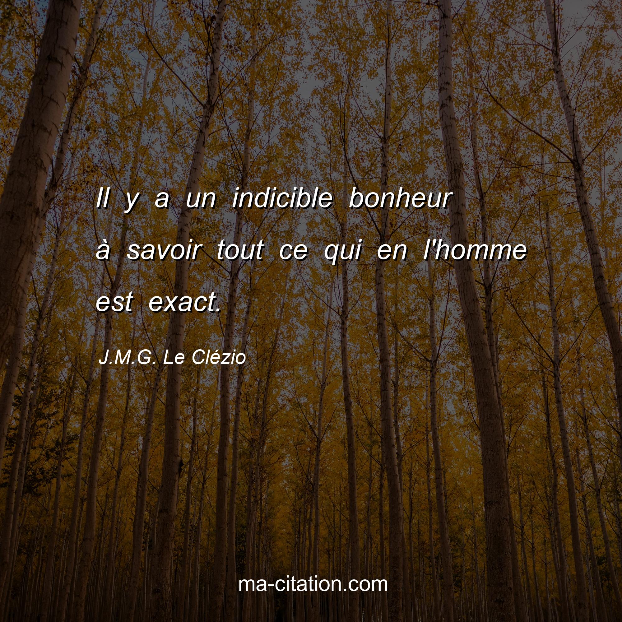 Citation sur la vie de J.M.G. Le Clézio :Il y a un indicible bonheur à savoir tout ce qui en l'homme est exact.