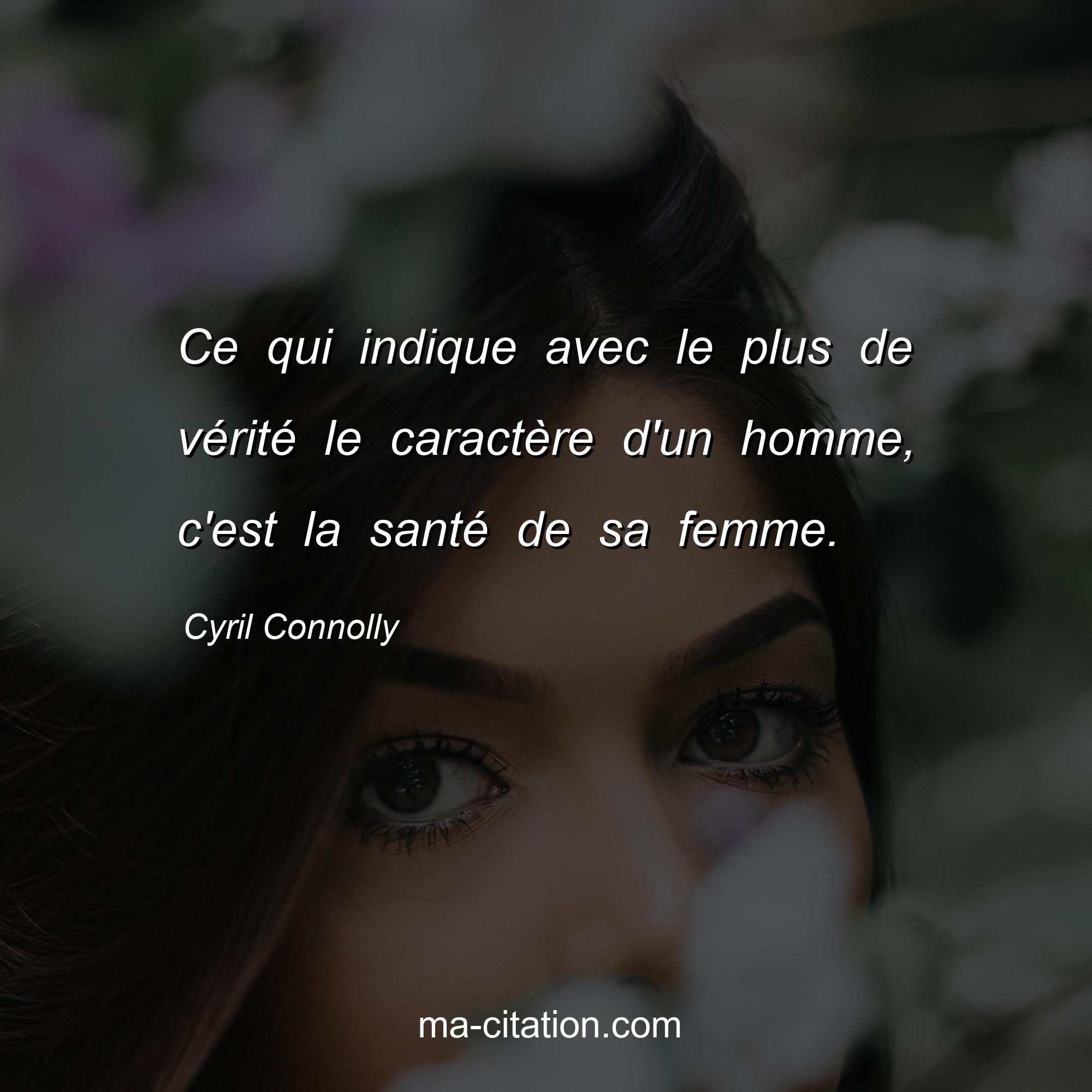 Citation sur la vie de Cyril Connolly :Ce qui indique avec le plus de vérité le caractère d'un homme, c'est la santé de sa femme.