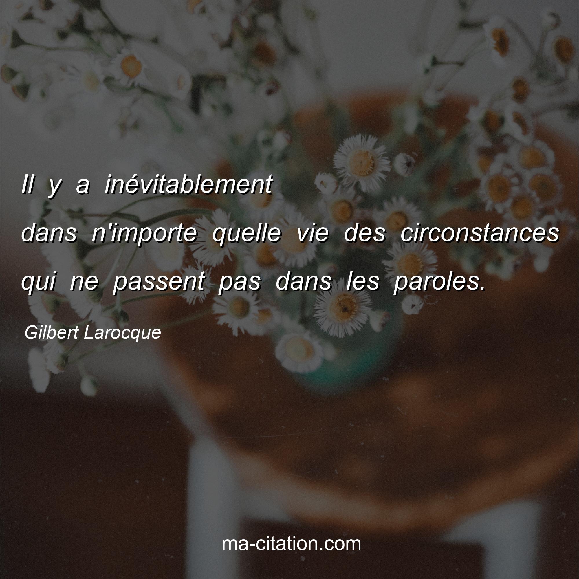 Citation sur la vie de Gilbert Larocque :Il y a inévitablement dans n'importe quelle vie des circonstances qui ne passent pas dans les paroles.