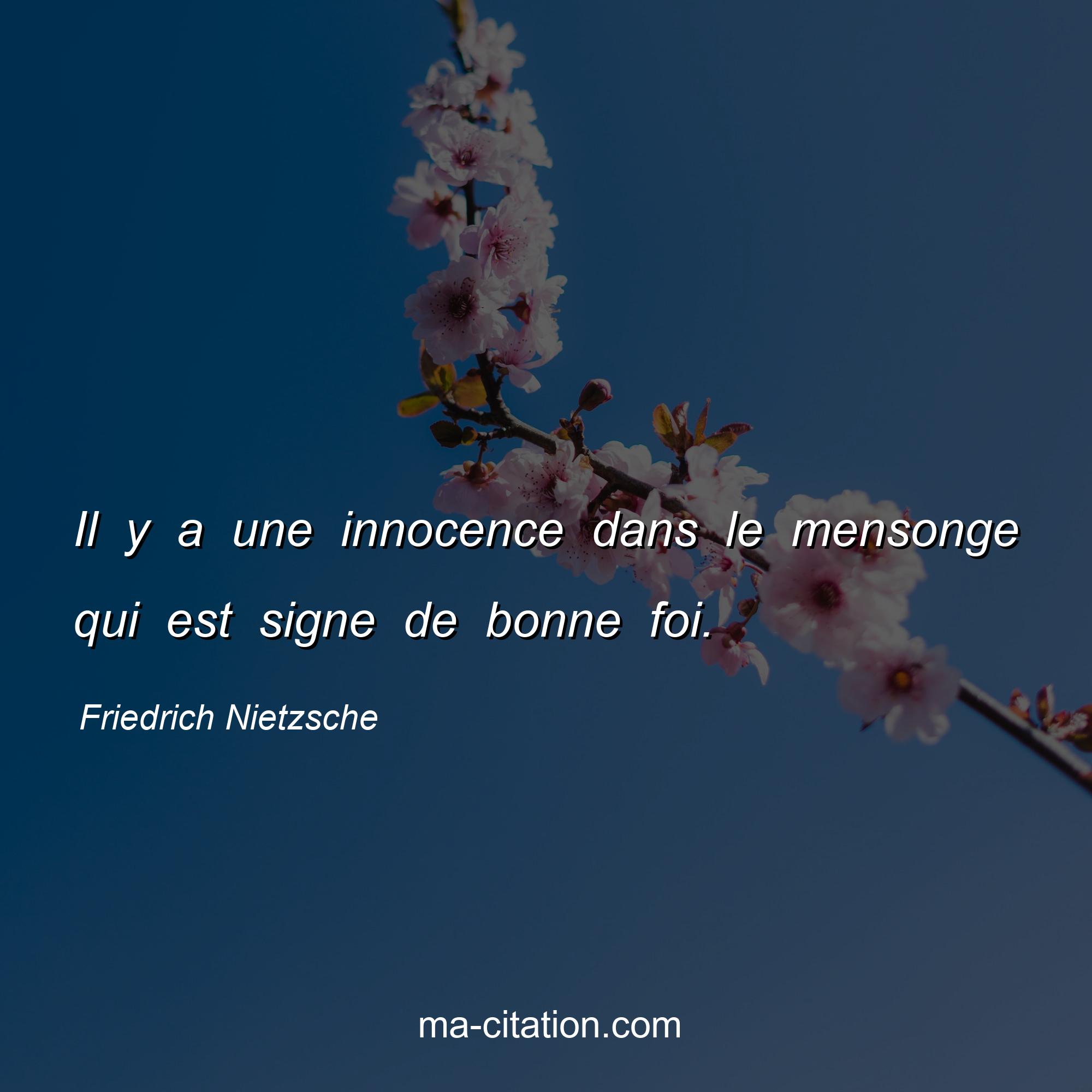 Citation sur la vie de Friedrich Nietzsche :Il y a une innocence dans le mensonge qui est signe de bonne foi.