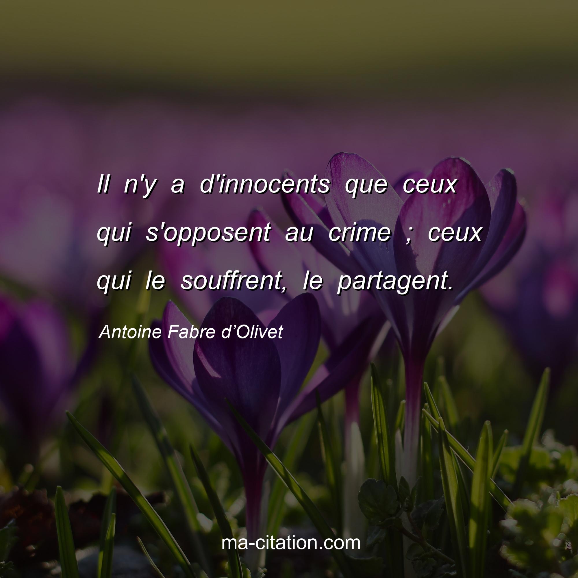 Citation sur la vie d'Antoine Fabre d’Olivet :Il n'y a d'innocents que ceux qui s'opposent au crime ; ceux qui le souffrent, le partagent.